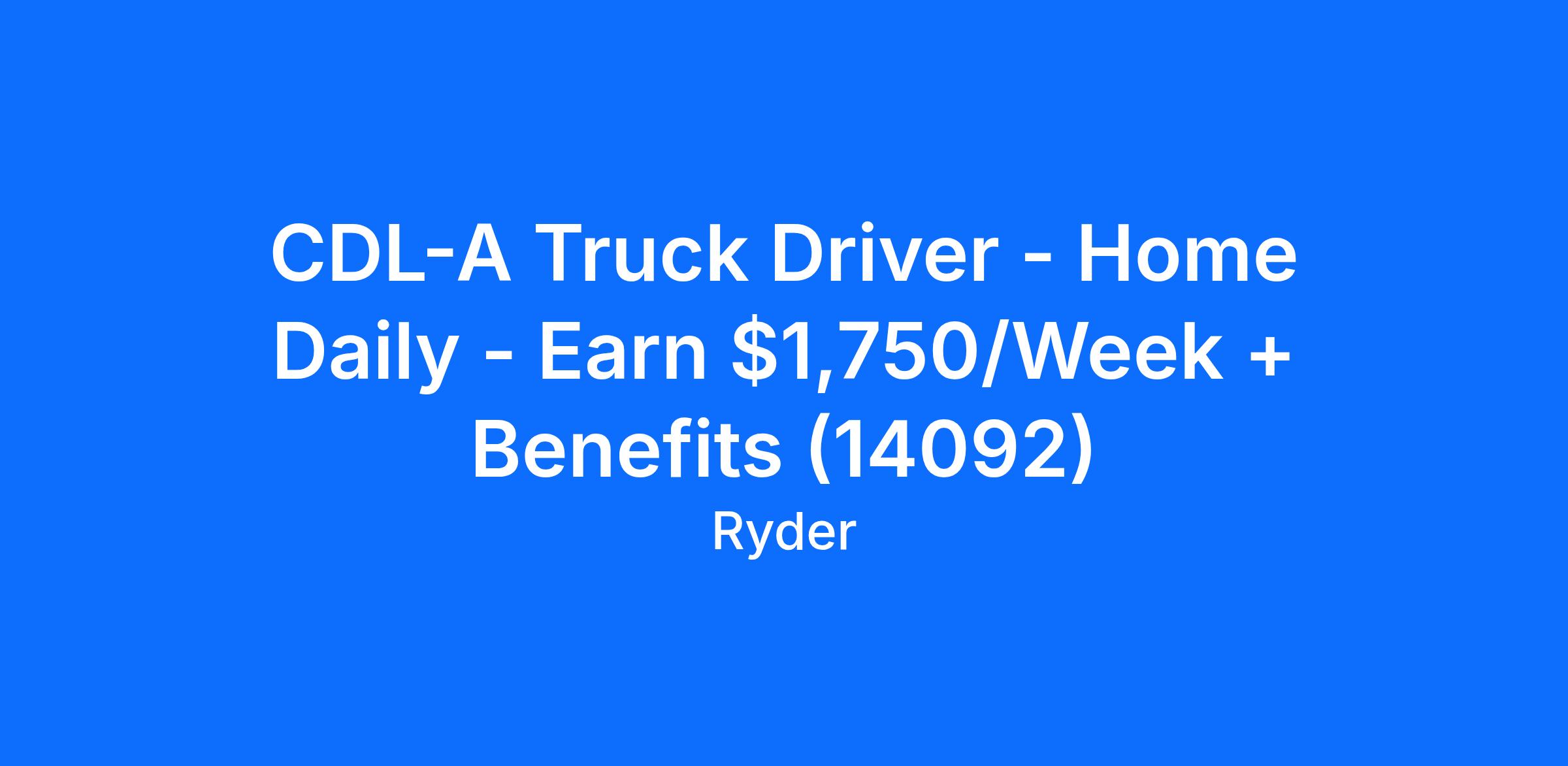 CDL-A Truck Driver - Home Daily - Earn $1,750/Week + Benefits (14092)