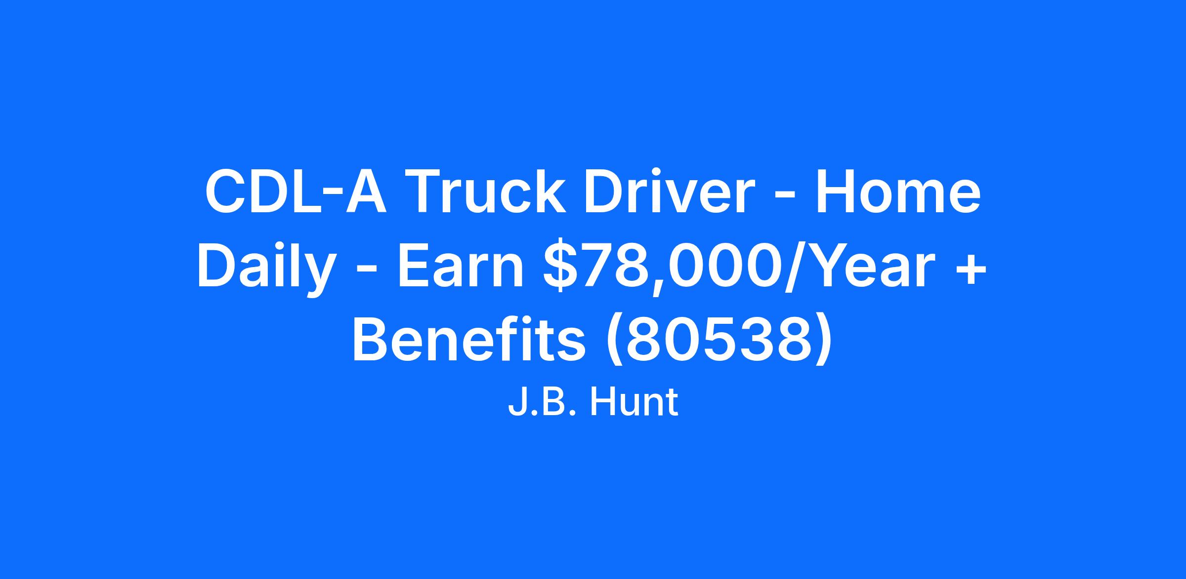 CDL-A Truck Driver - Home Daily - Earn $78,000/Year + Benefits (80538)