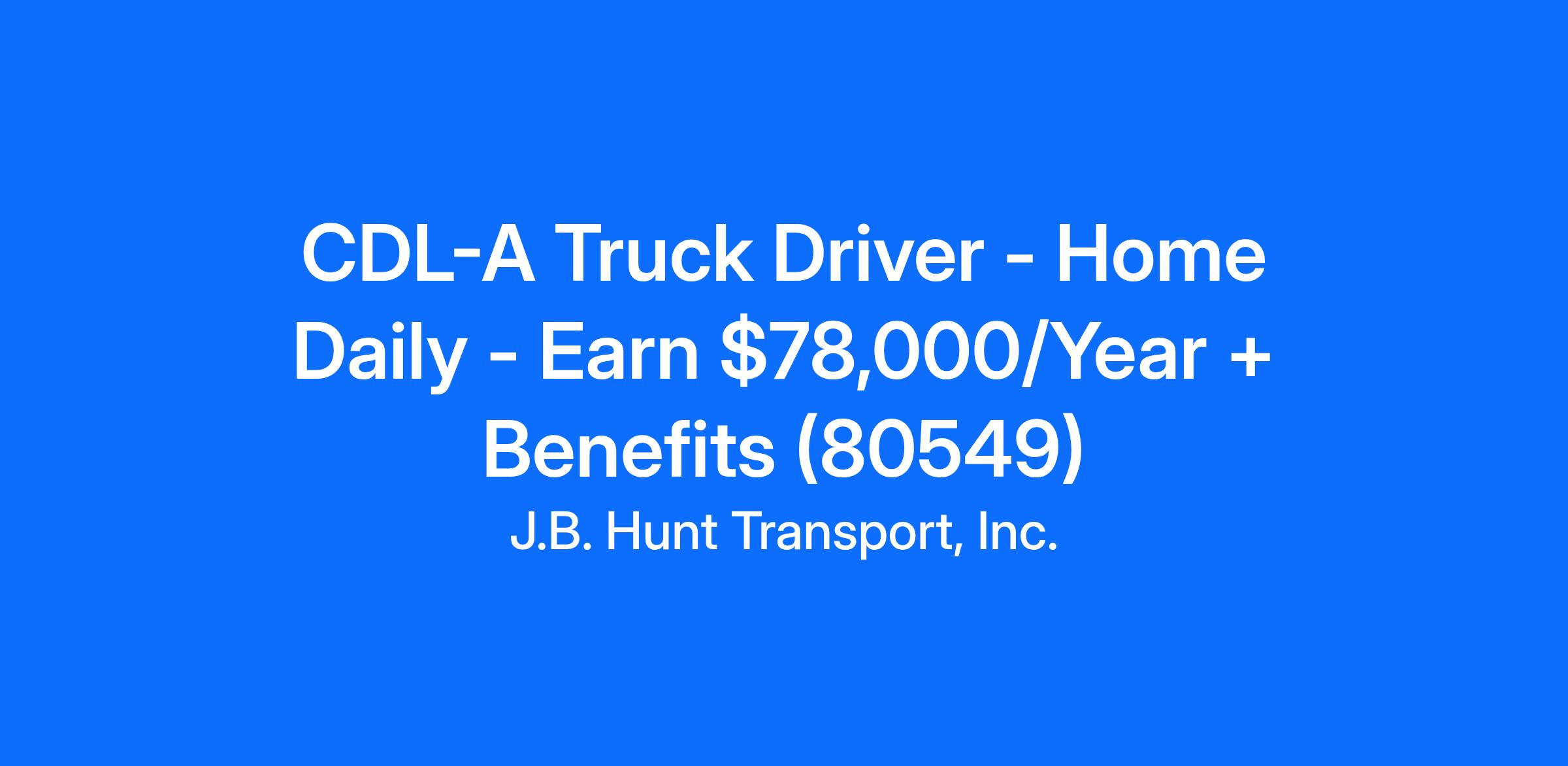 CDL-A Truck Driver - Home Daily - Earn $78,000/Year + Benefits (80549)