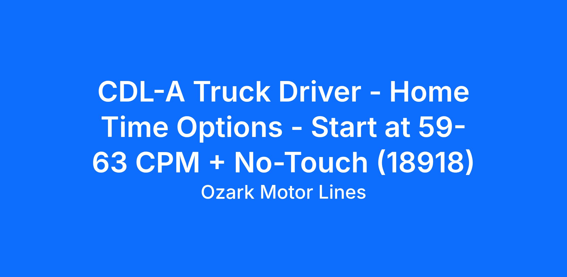 CDL-A Truck Driver - Home Time Options - Start at 59-63 CPM + No-Touch (18918)