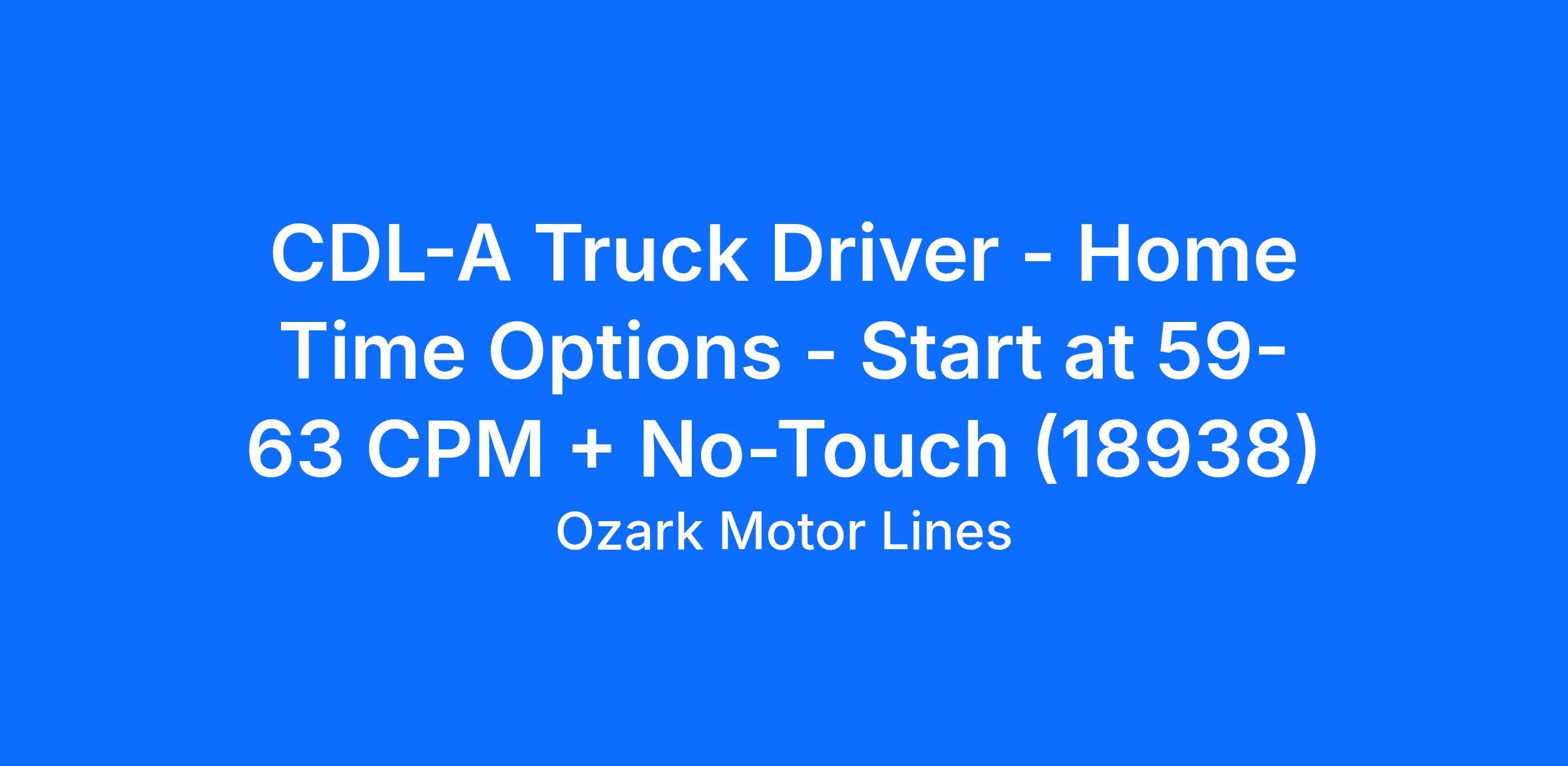 CDL-A Truck Driver - Home Time Options - Start at 59-63 CPM + No-Touch (18938)