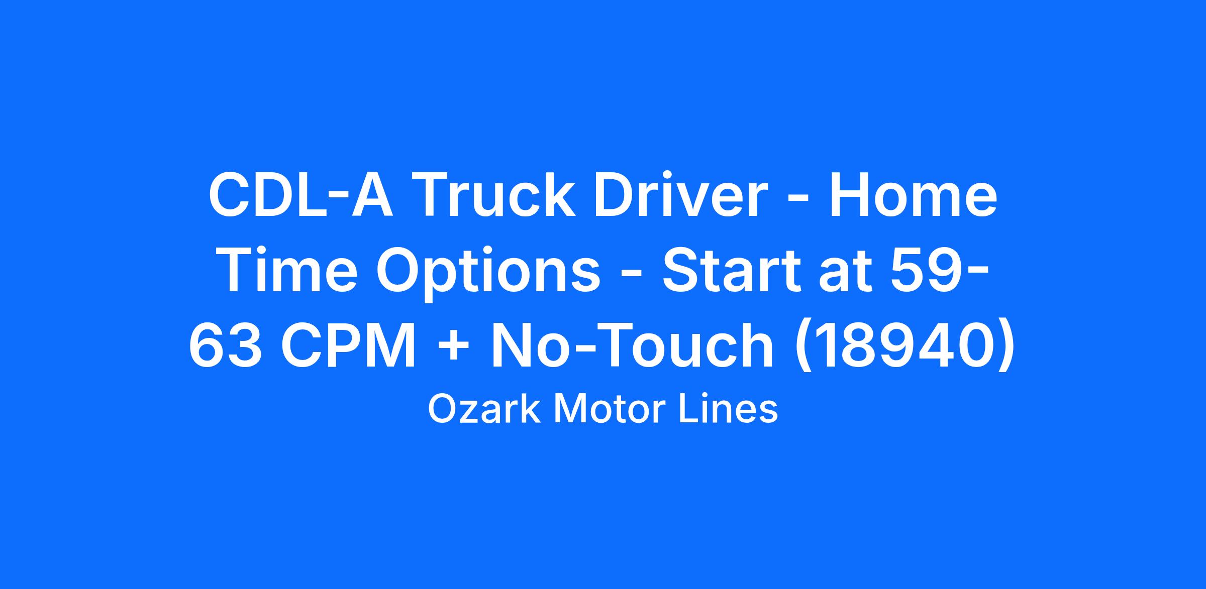 CDL-A Truck Driver - Home Time Options - Start at 59-63 CPM + No-Touch (18940)