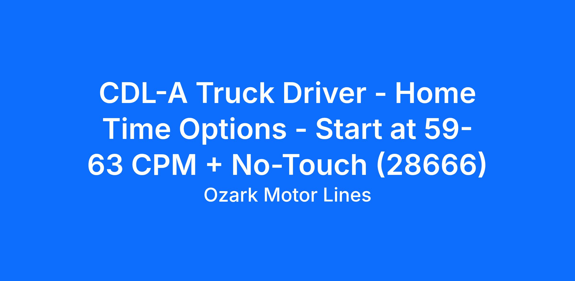 CDL-A Truck Driver - Home Time Options - Start at 59-63 CPM + No-Touch (28666)