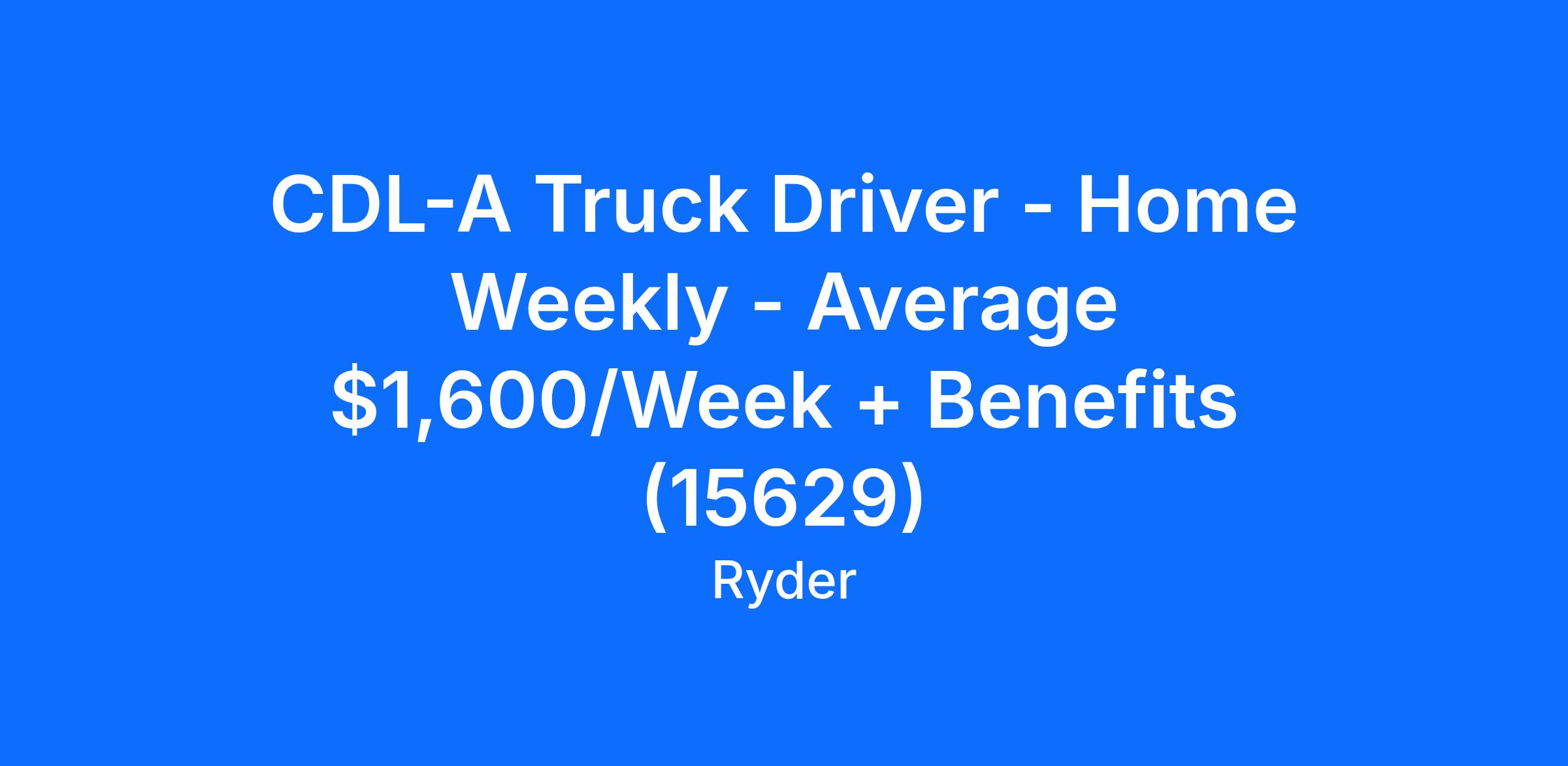 CDL-A Truck Driver - Home Weekly - Average $1,600/Week + Benefits (15629)