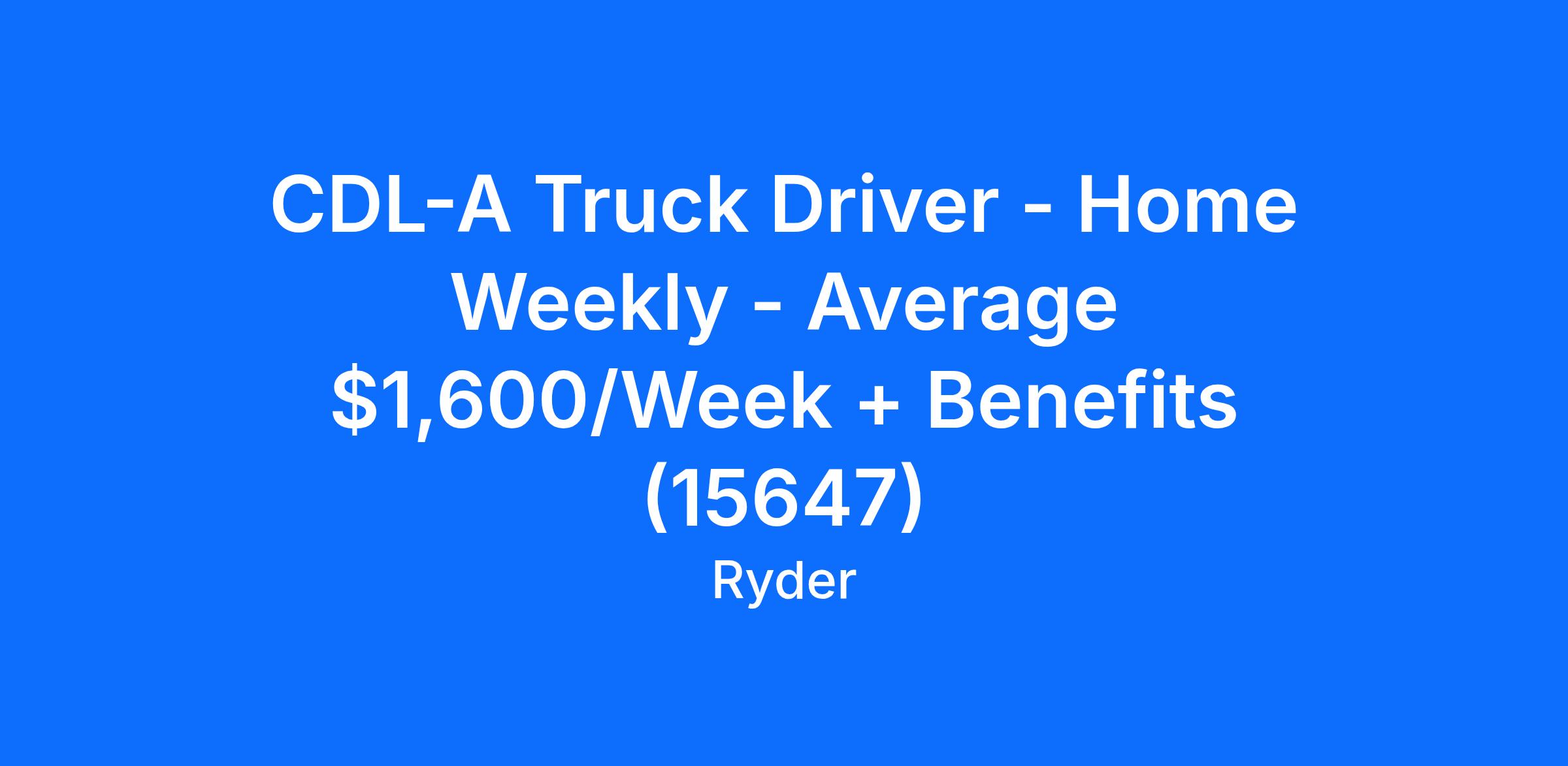 CDL-A Truck Driver - Home Weekly - Average $1,600/Week + Benefits (15647)