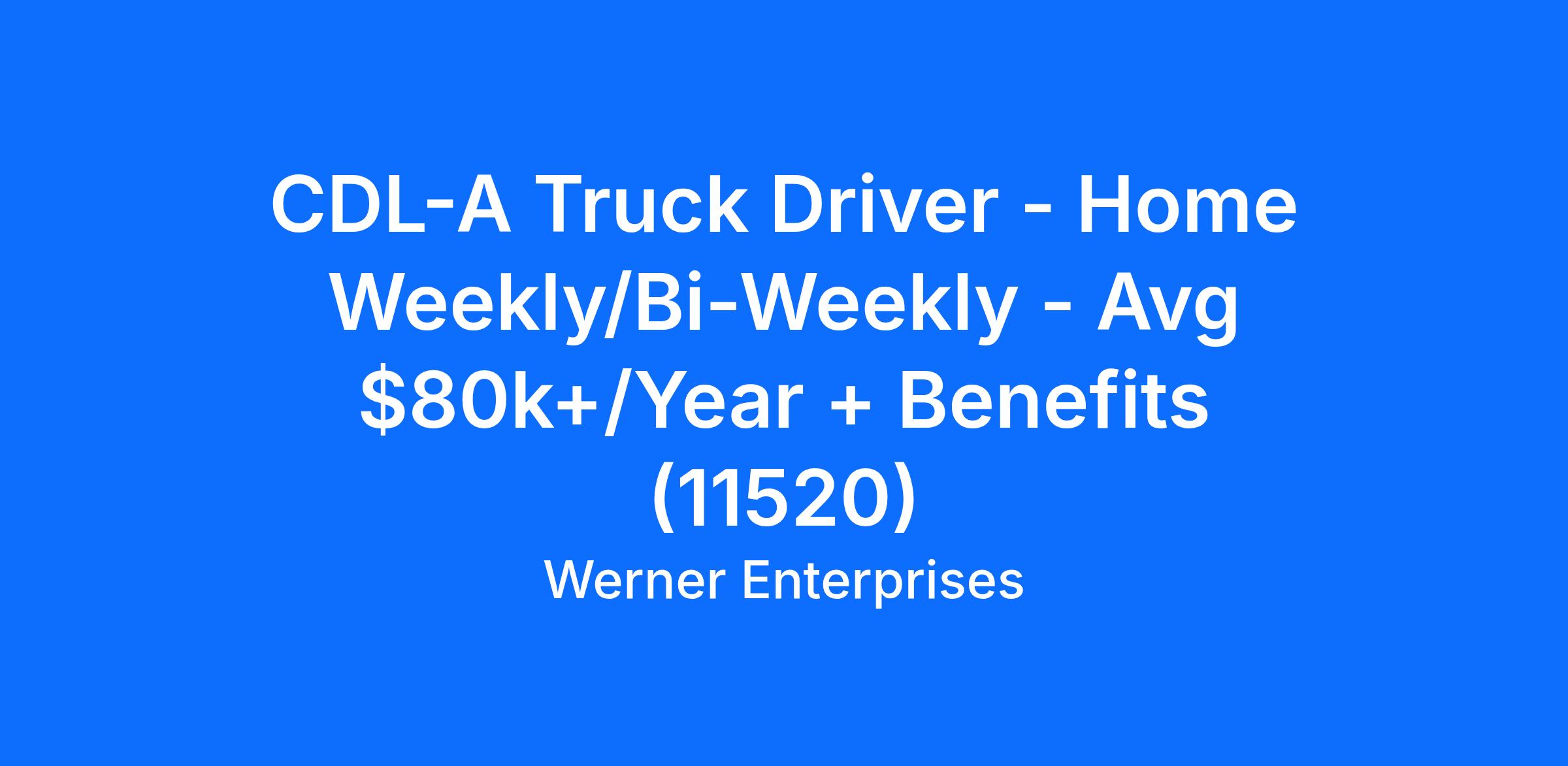 CDL-A Truck Driver - Home Weekly/Bi-Weekly - Avg $80k+/Year + Benefits (11520)