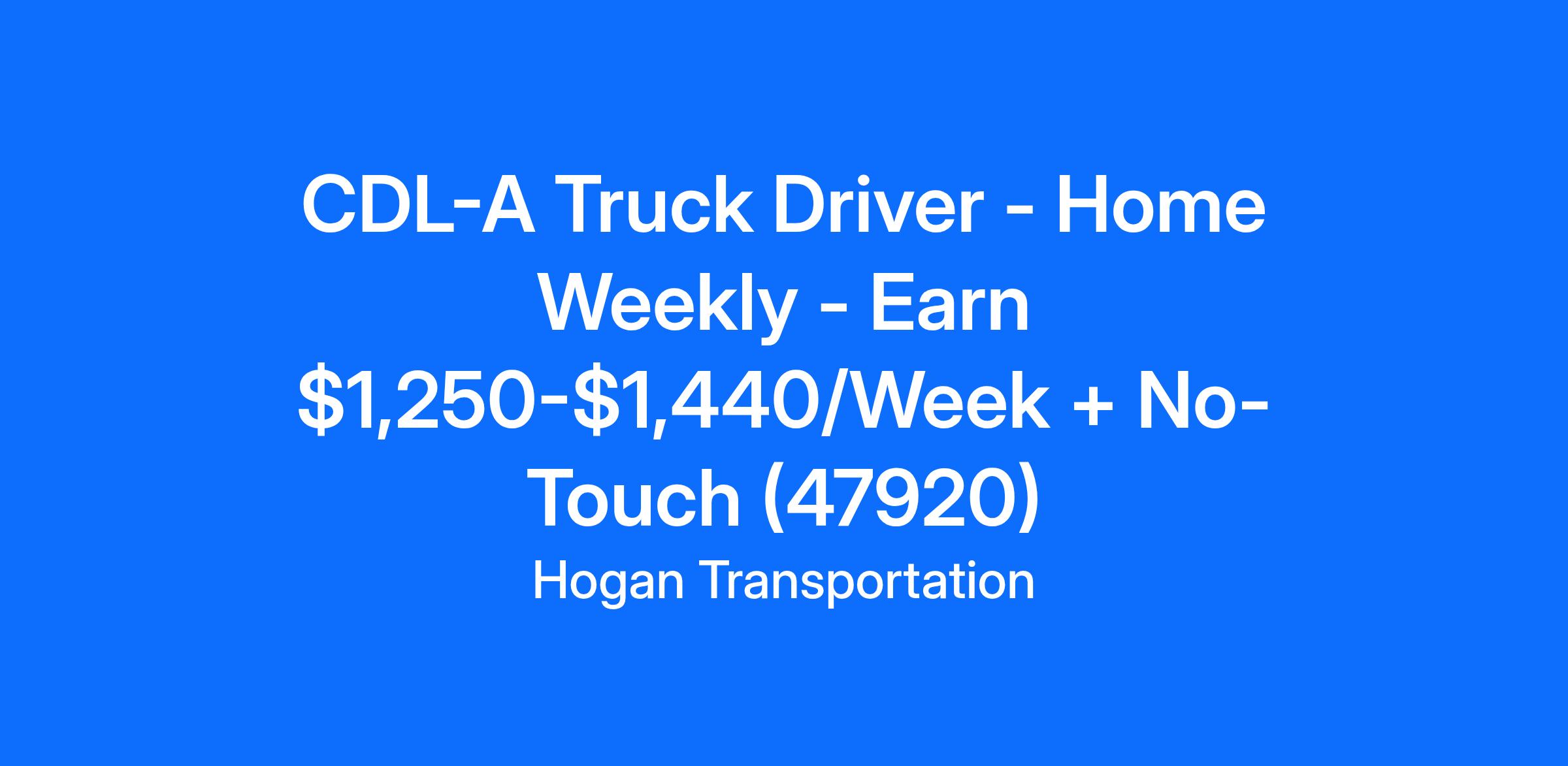 CDL-A Truck Driver - Home Weekly - Earn $1,250-$1,440/Week + No-Touch (47920)