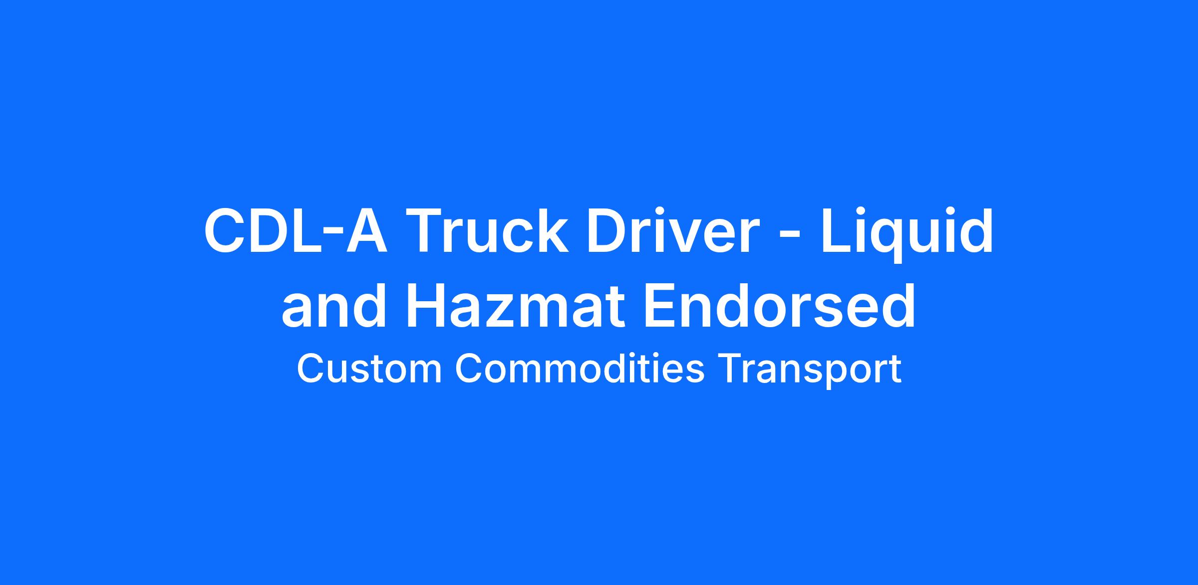 CDL-A Truck Driver - Liquid and Hazmat Endorsed