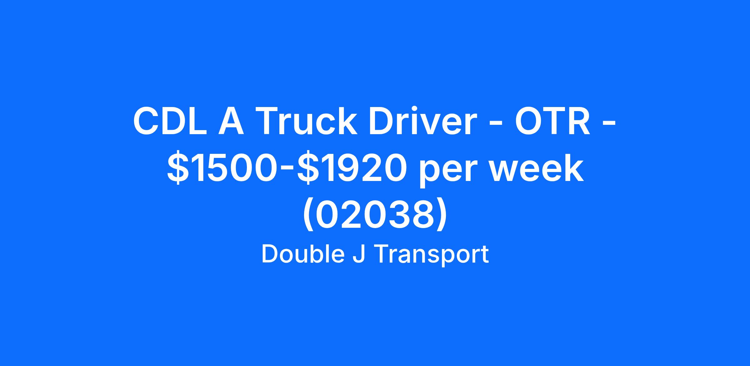 CDL A Truck Driver - OTR - $1500-$1920 per week (02038)