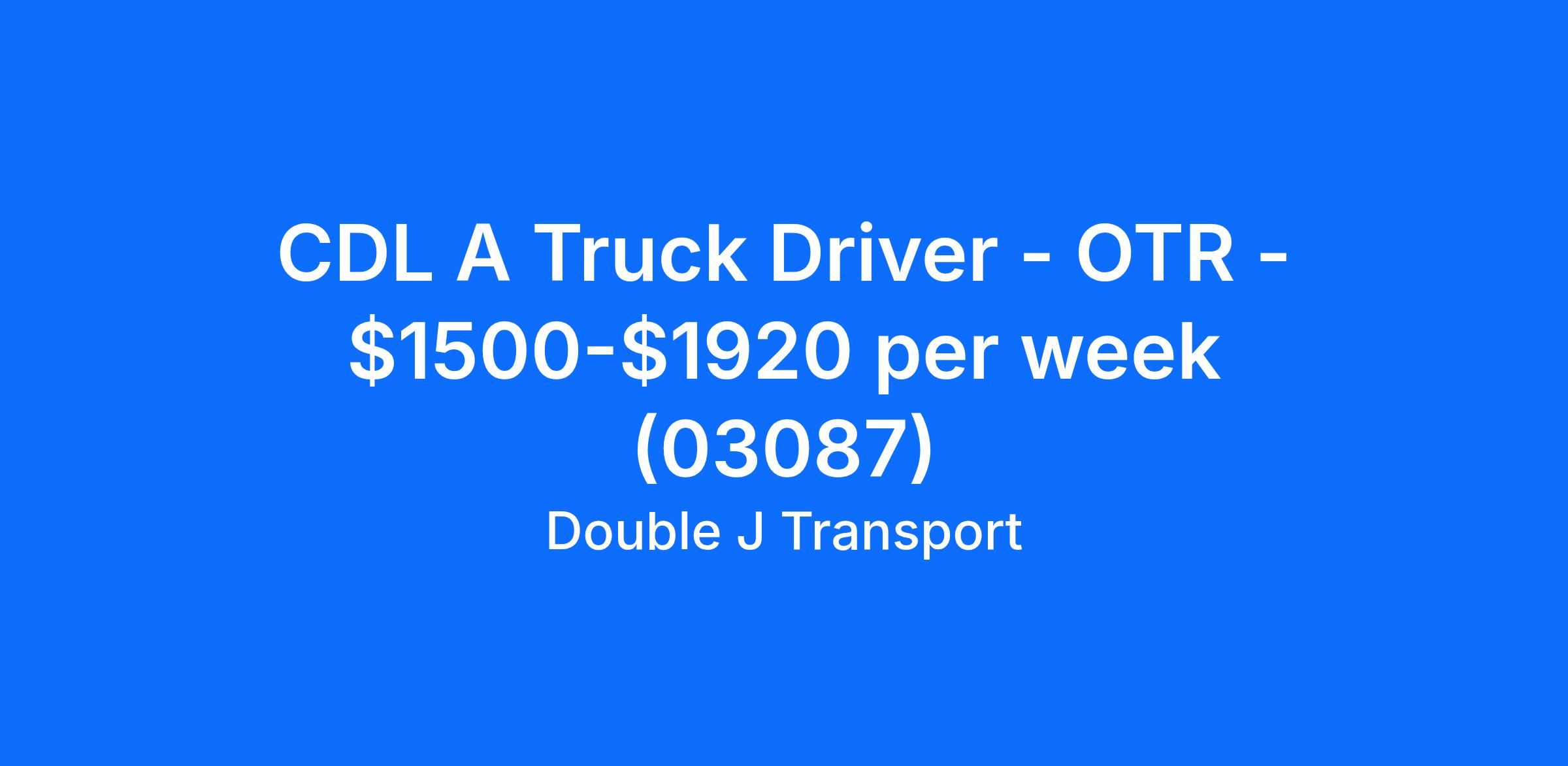 CDL A Truck Driver - OTR - $1500-$1920 per week (03087)