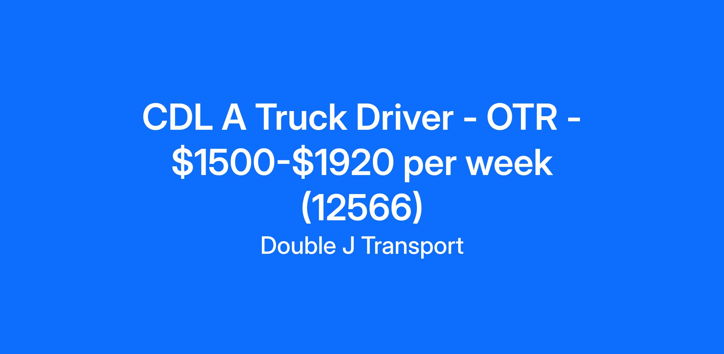 CDL A Truck Driver - OTR - $1500-$1920 per week (12566)