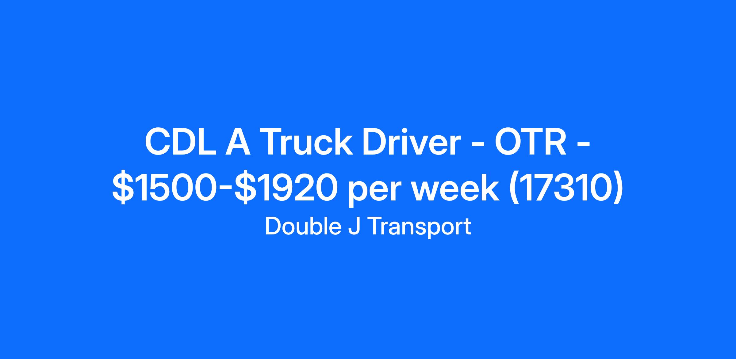 CDL A Truck Driver - OTR - $1500-$1920 per week (17310)