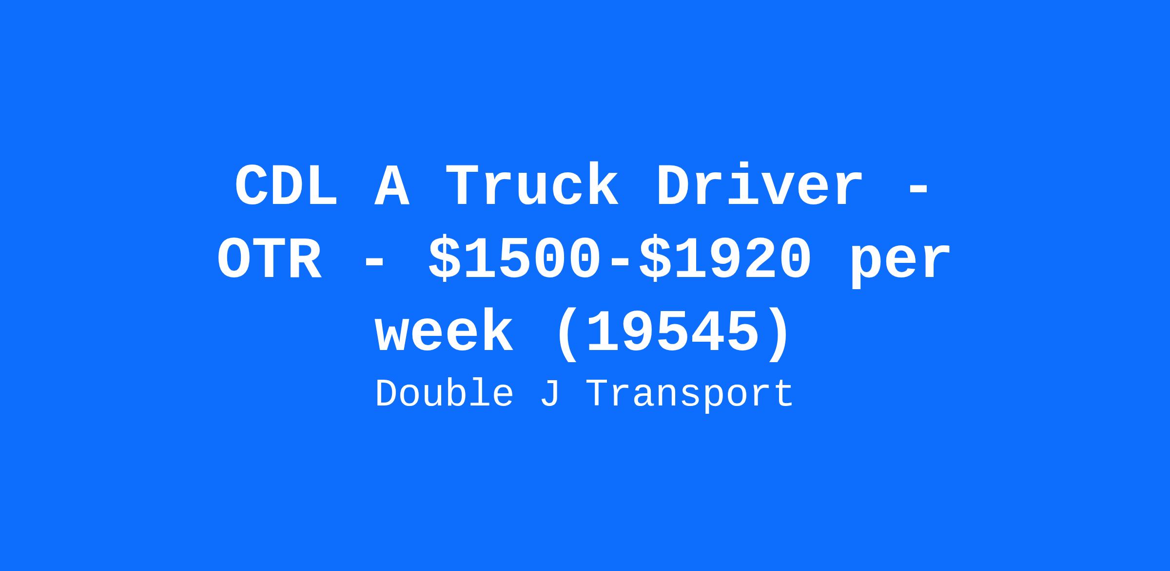 CDL A Truck Driver - OTR - $1500-$1920 per week (19545)