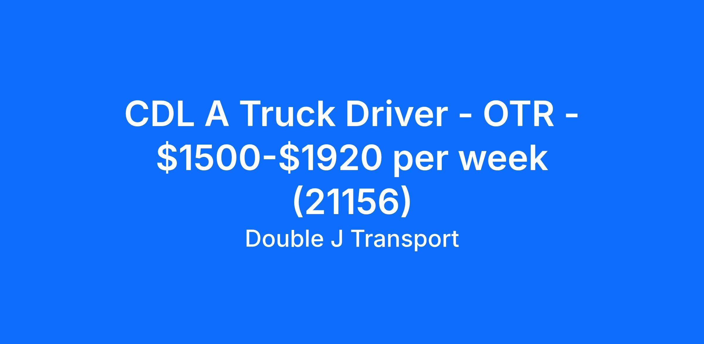 CDL A Truck Driver - OTR - $1500-$1920 per week (21156)