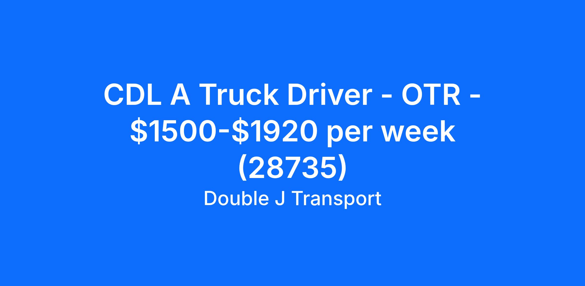CDL A Truck Driver - OTR - $1500-$1920 per week (28735)