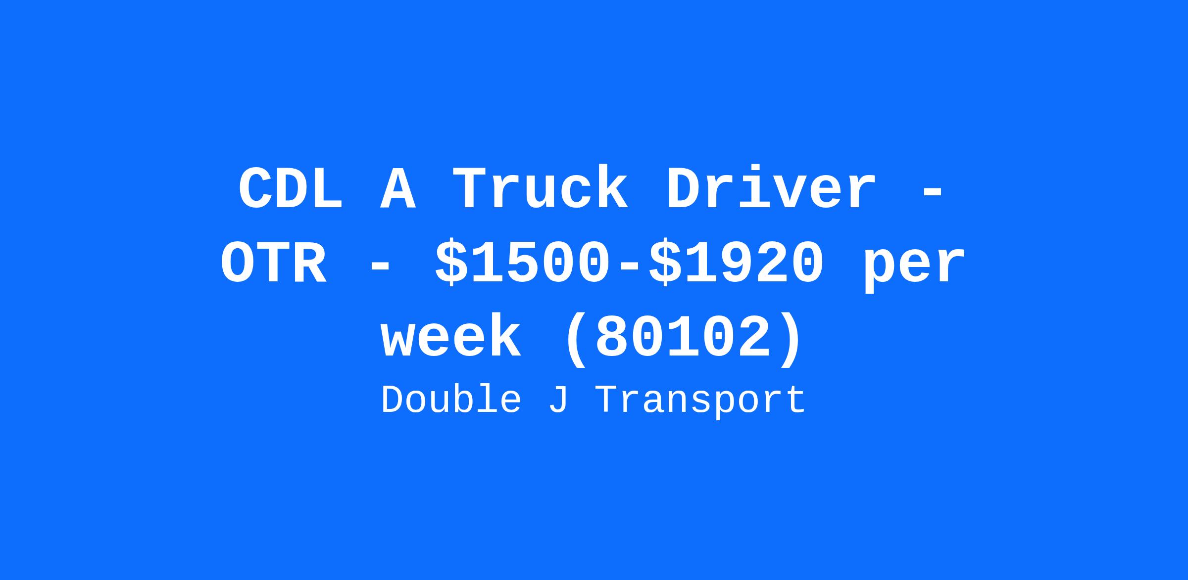 CDL A Truck Driver - OTR - $1500-$1920 per week (80102)