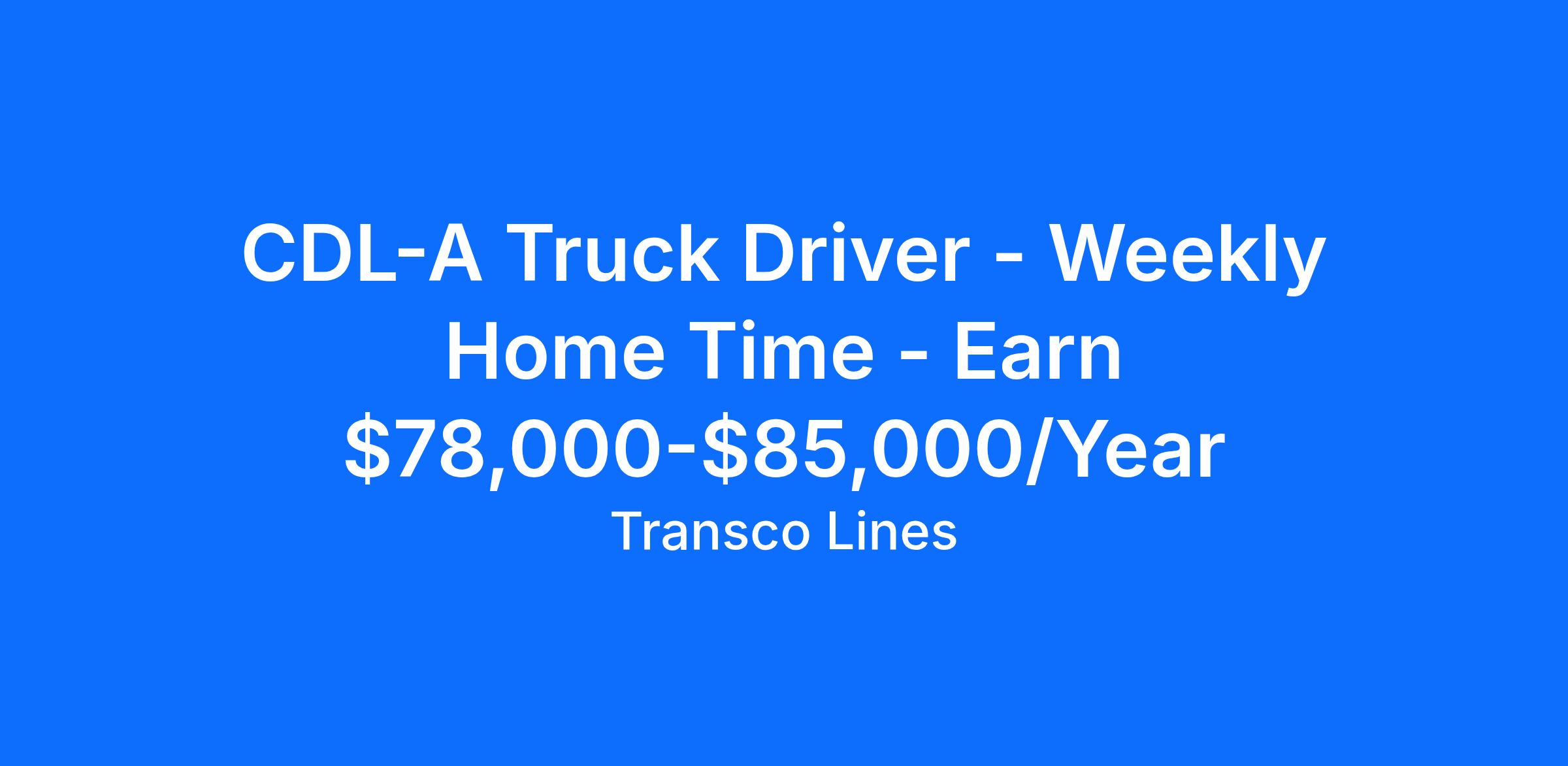 CDL-A Truck Driver - Weekly Home Time - Earn $78,000-$85,000/Year