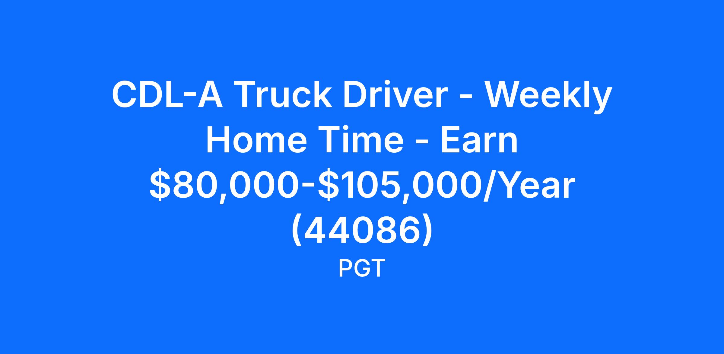 CDL-A Truck Driver - Weekly Home Time - Earn $80,000-$105,000/Year (44086)