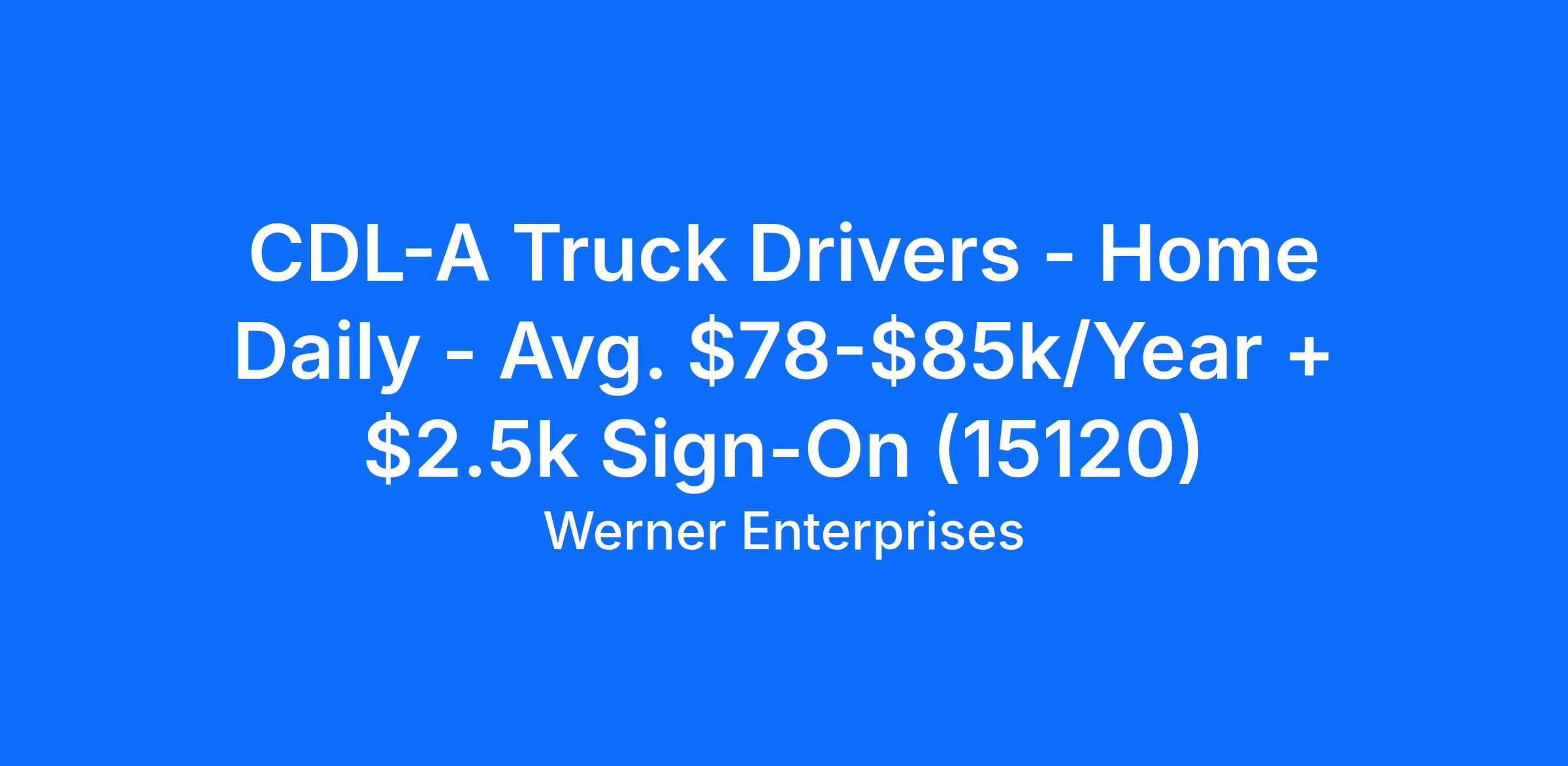 CDL-A Truck Drivers - Home Daily - Avg. $78-$85k/Year + $2.5k Sign-On (15120)