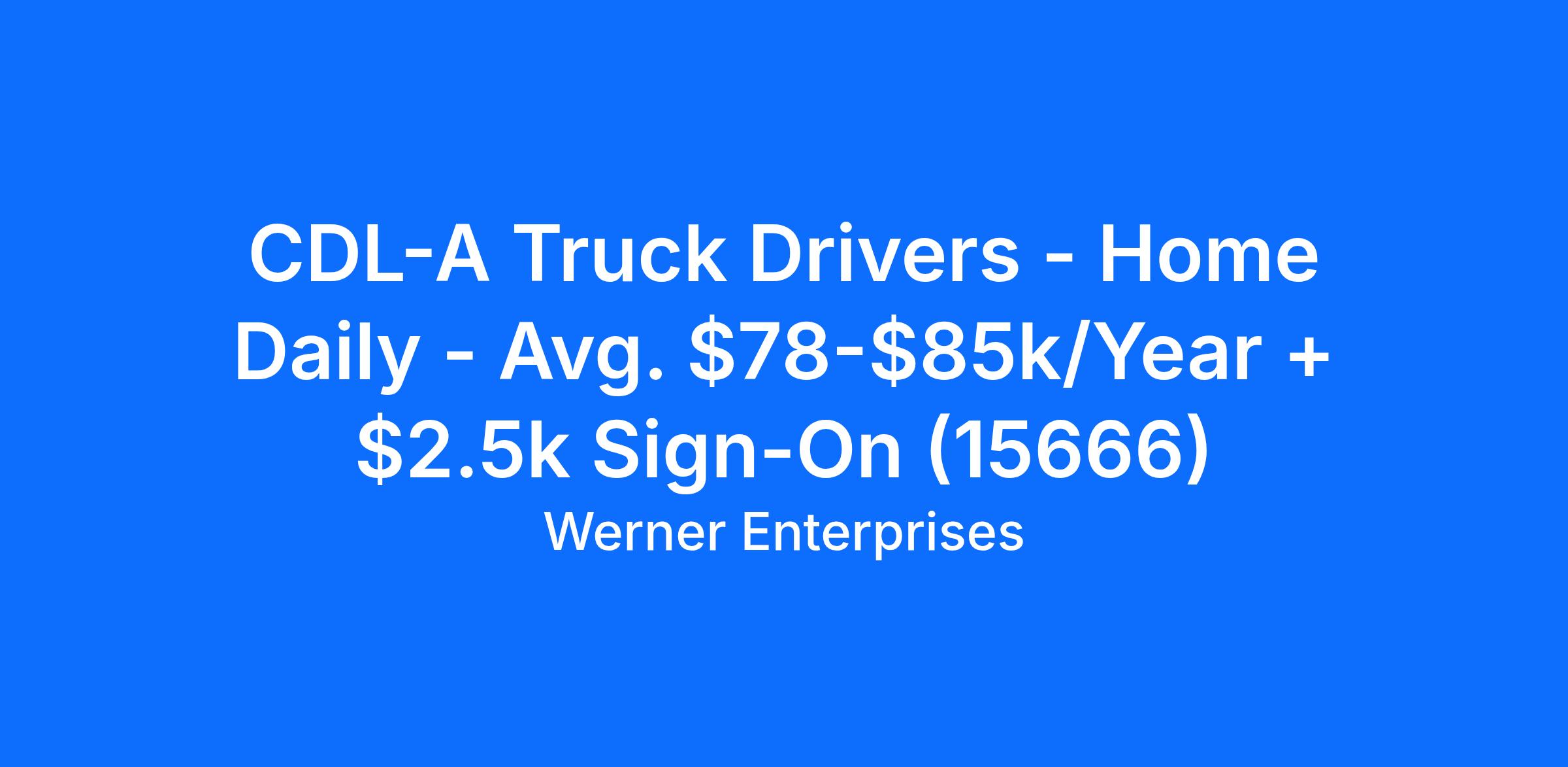 CDL-A Truck Drivers - Home Daily - Avg. $78-$85k/Year + $2.5k Sign-On (15666)