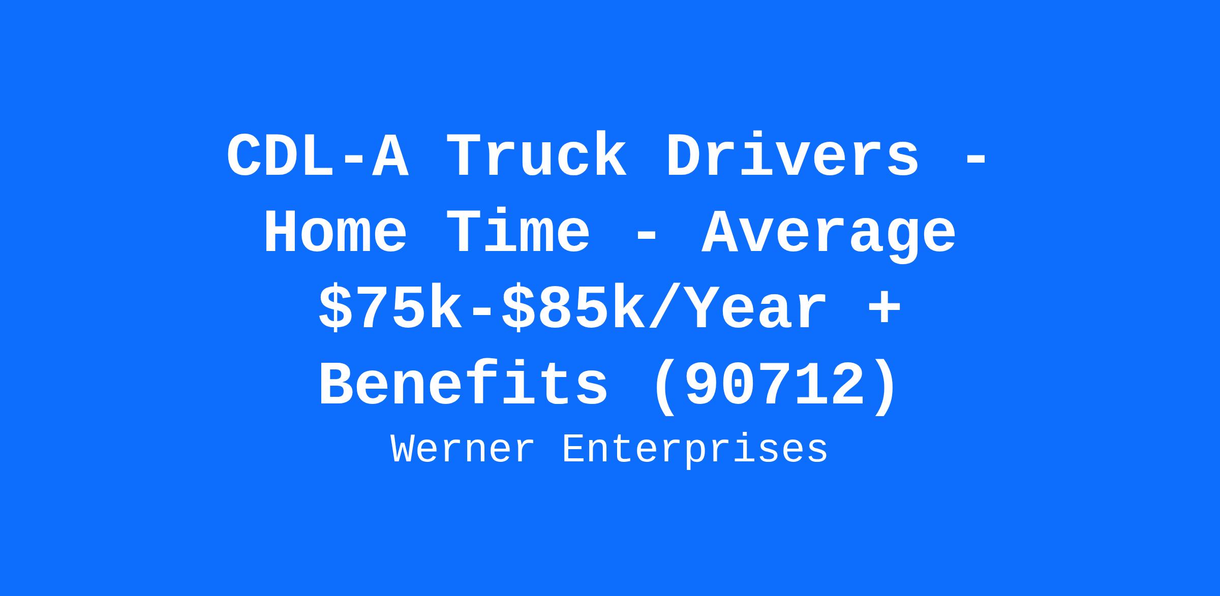 CDL-A Truck Drivers - Home Time - Average $75k-$85k/Year + Benefits (90712)