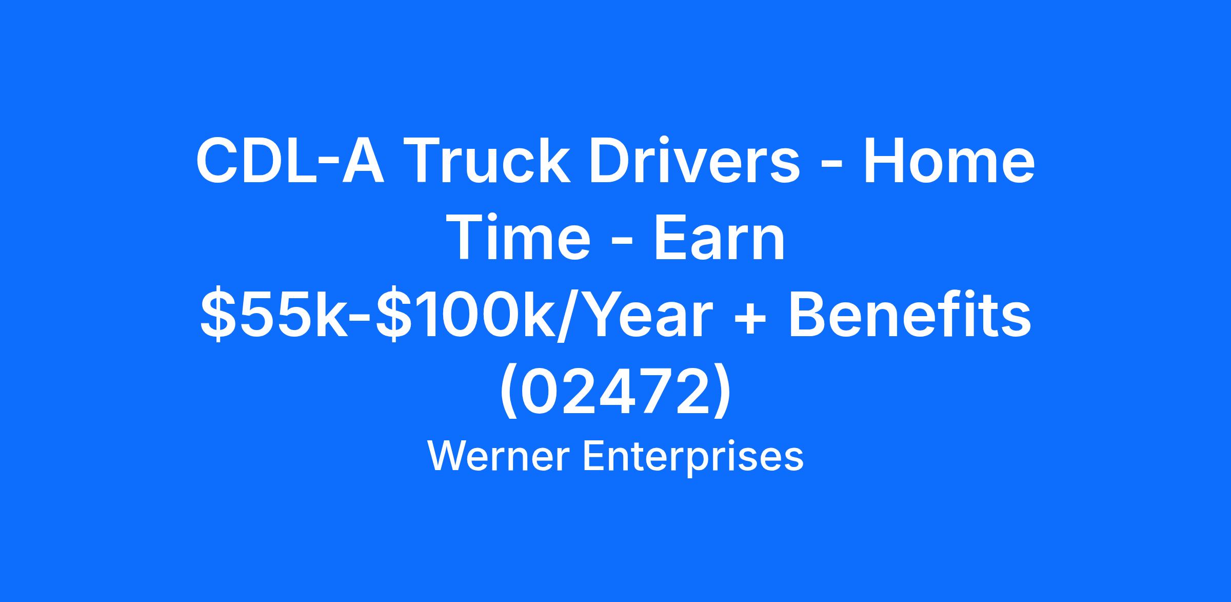 CDL-A Truck Drivers - Home Time - Earn $55k-$100k/Year + Benefits (02472)