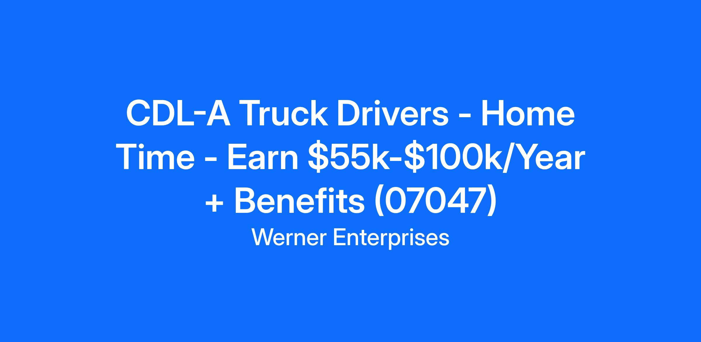 CDL-A Truck Drivers - Home Time - Earn $55k-$100k/Year + Benefits (07047)