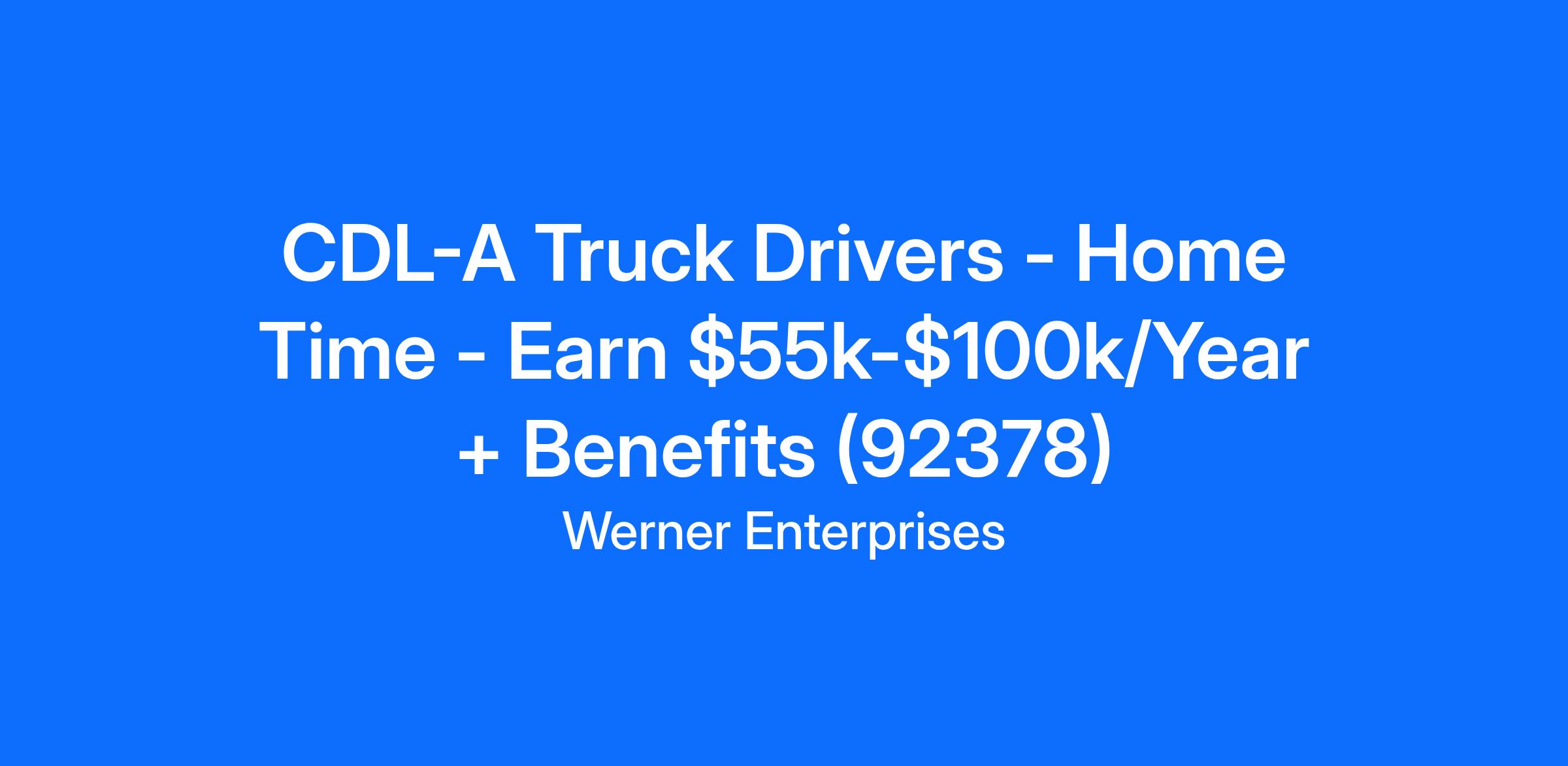 CDL-A Truck Drivers - Home Time - Earn $55k-$100k/Year + Benefits (92378)