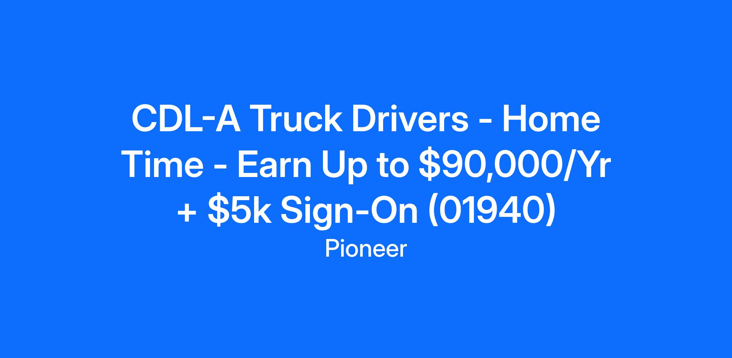 CDL-A Truck Drivers - Home Time - Earn Up to $90,000/Yr + $5k Sign-On (01940)