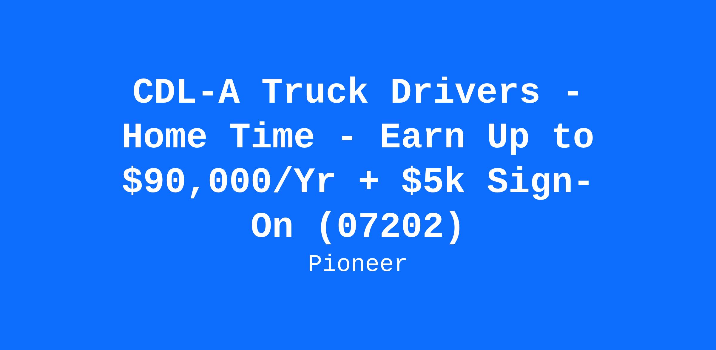 CDL-A Truck Drivers - Home Time - Earn Up to $90,000/Yr + $5k Sign-On (07202)
