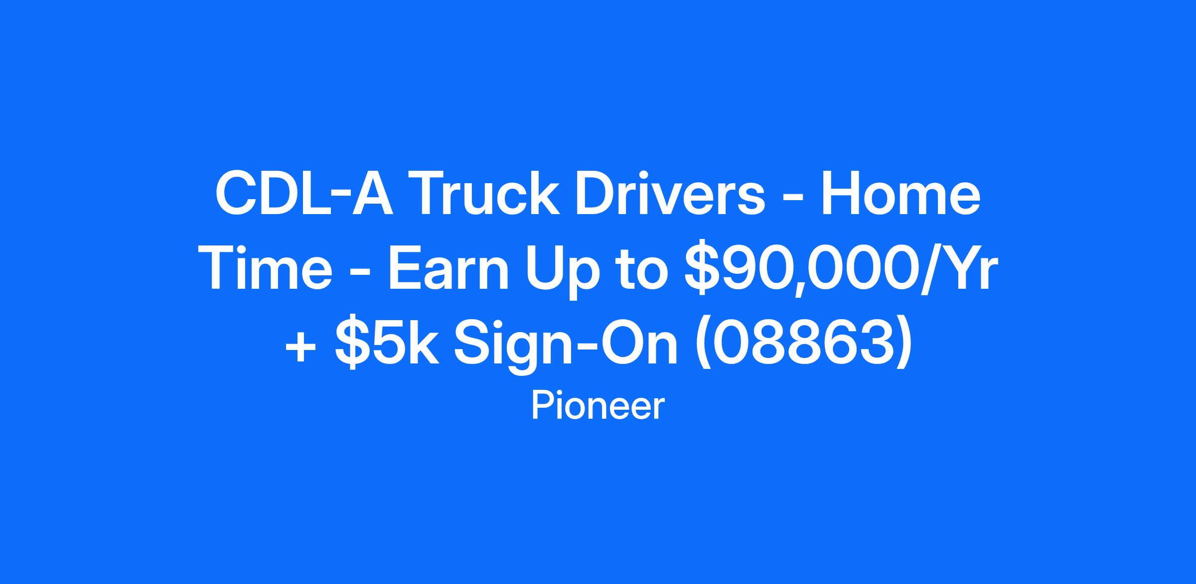 CDL-A Truck Drivers - Home Time - Earn Up to $90,000/Yr + $5k Sign-On (08863)