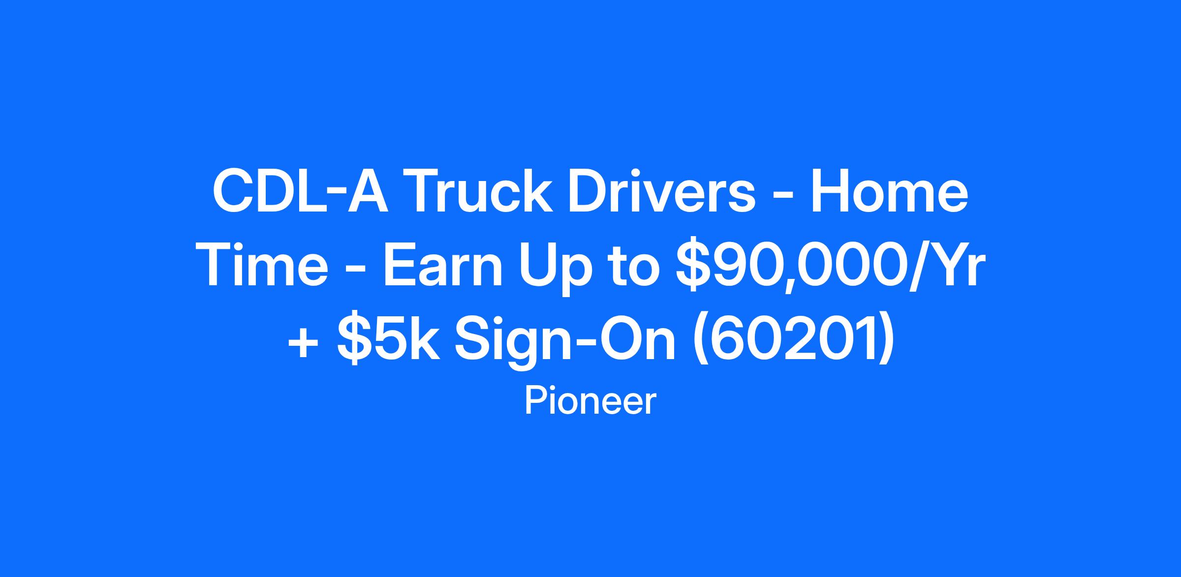 CDL-A Truck Drivers - Home Time - Earn Up to $90,000/Yr + $5k Sign-On (60201)