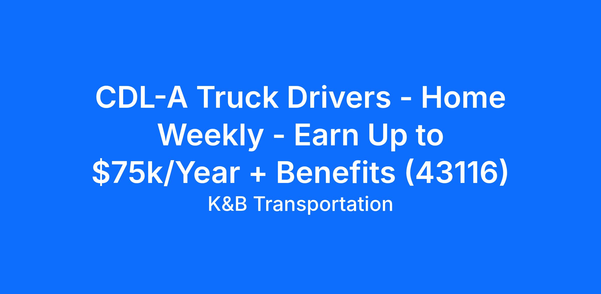 CDL-A Truck Drivers - Home Weekly - Earn Up to $75k/Year + Benefits (43116)