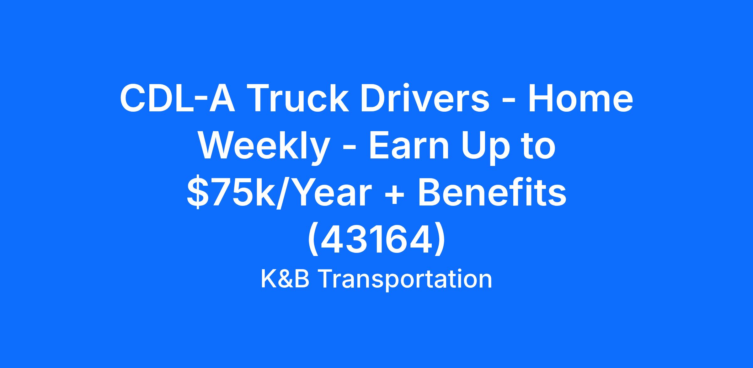 CDL-A Truck Drivers - Home Weekly - Earn Up to $75k/Year + Benefits (43164)
