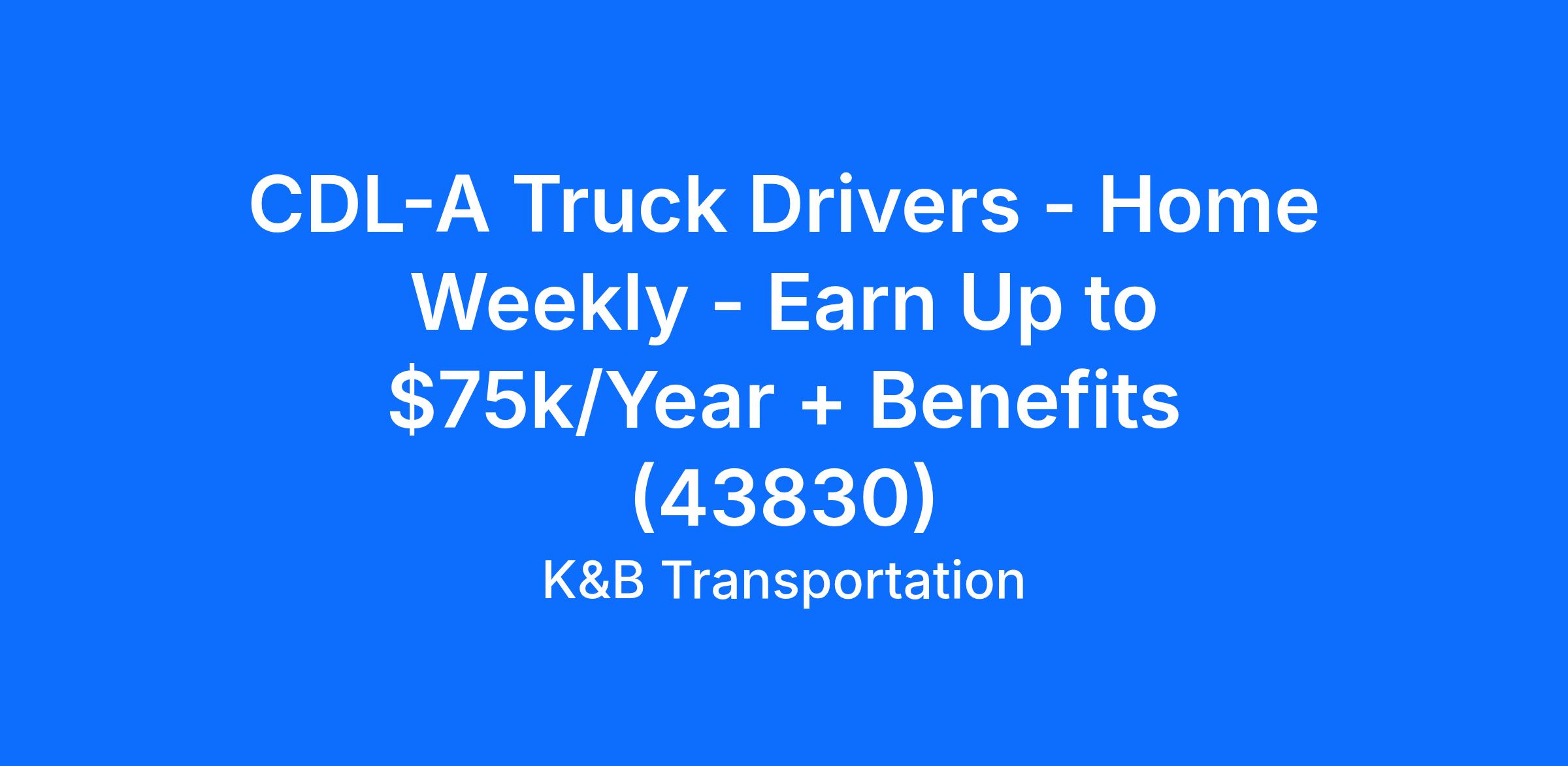 CDL-A Truck Drivers - Home Weekly - Earn Up to $75k/Year + Benefits (43830)