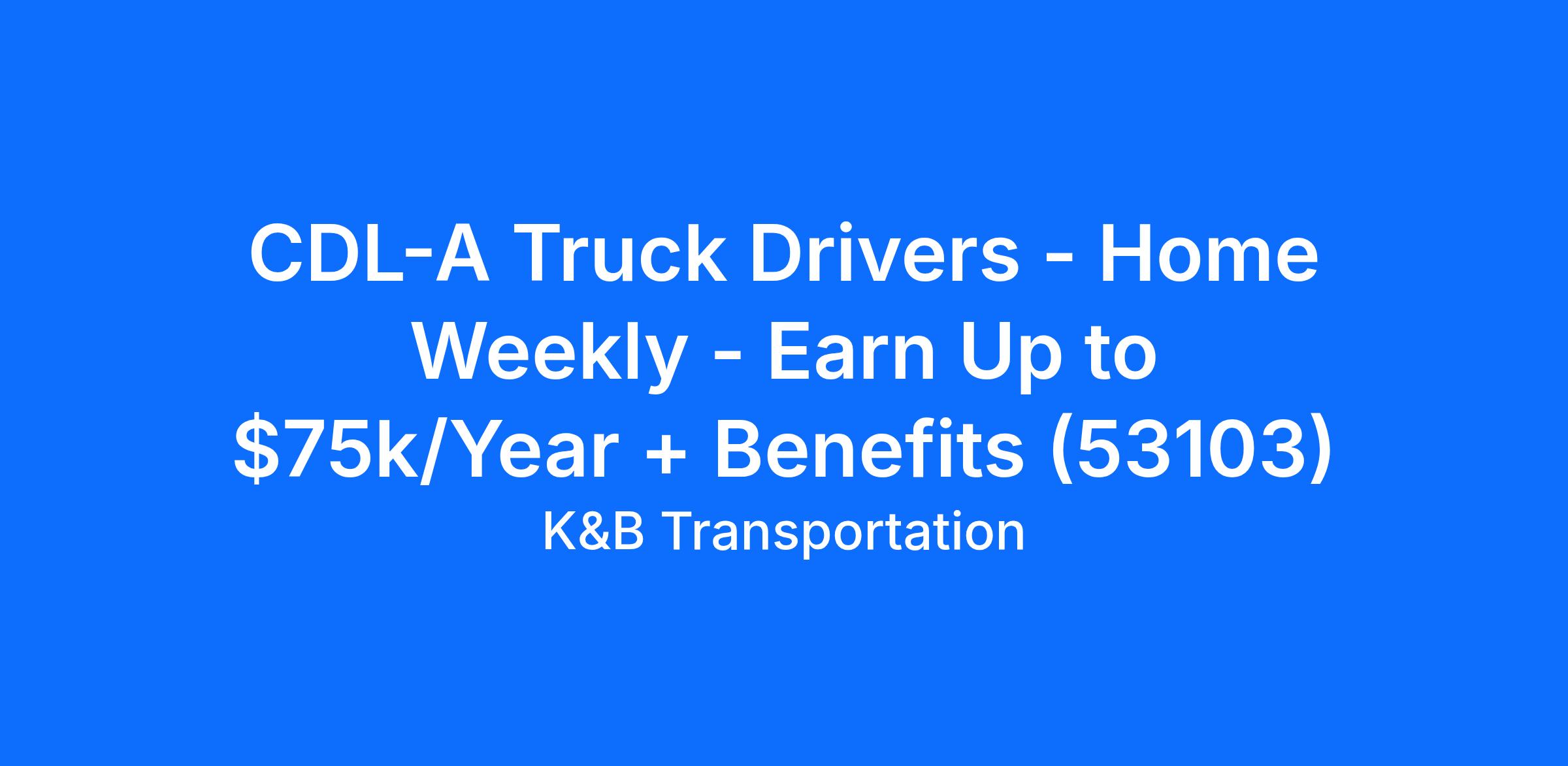 CDL-A Truck Drivers - Home Weekly - Earn Up to $75k/Year + Benefits (53103)
