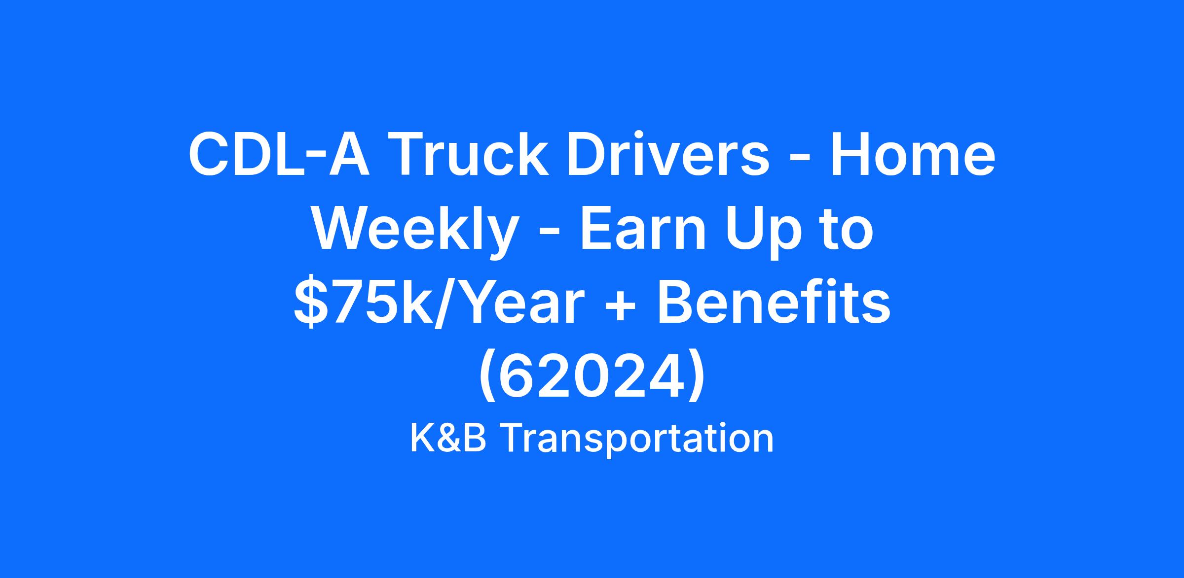 CDL-A Truck Drivers - Home Weekly - Earn Up to $75k/Year + Benefits (62024)
