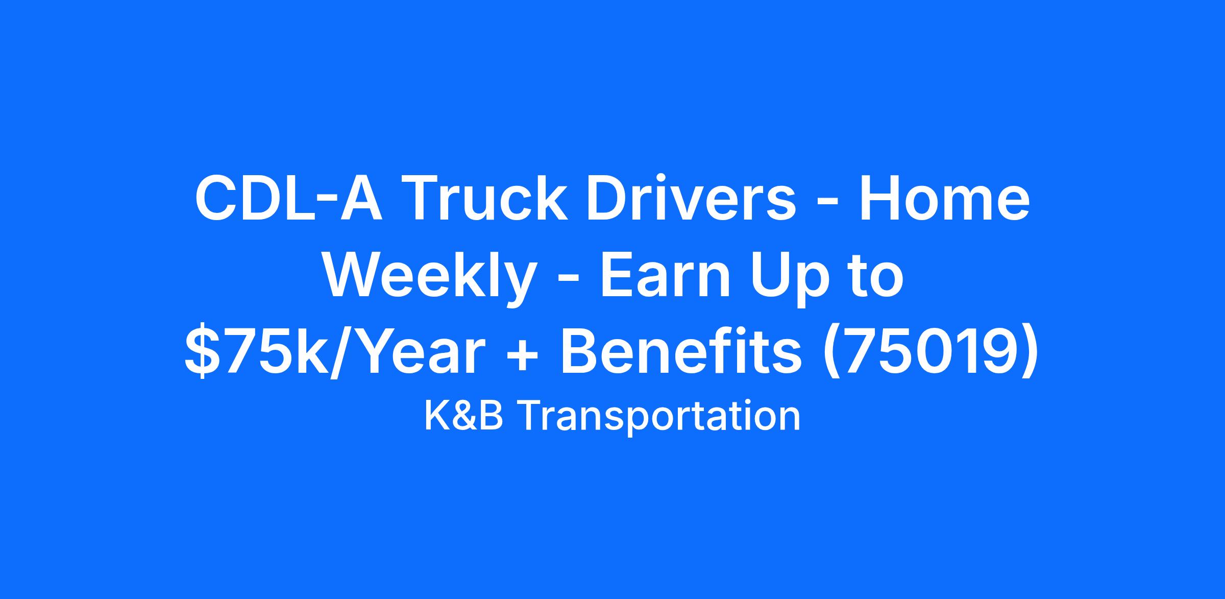 CDL-A Truck Drivers - Home Weekly - Earn Up to $75k/Year + Benefits (75019)
