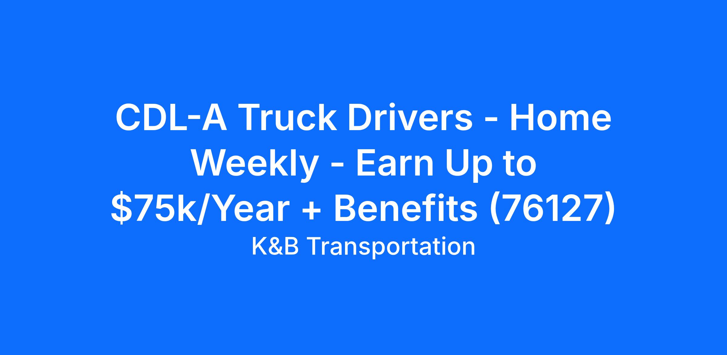 CDL-A Truck Drivers - Home Weekly - Earn Up to $75k/Year + Benefits (76127)