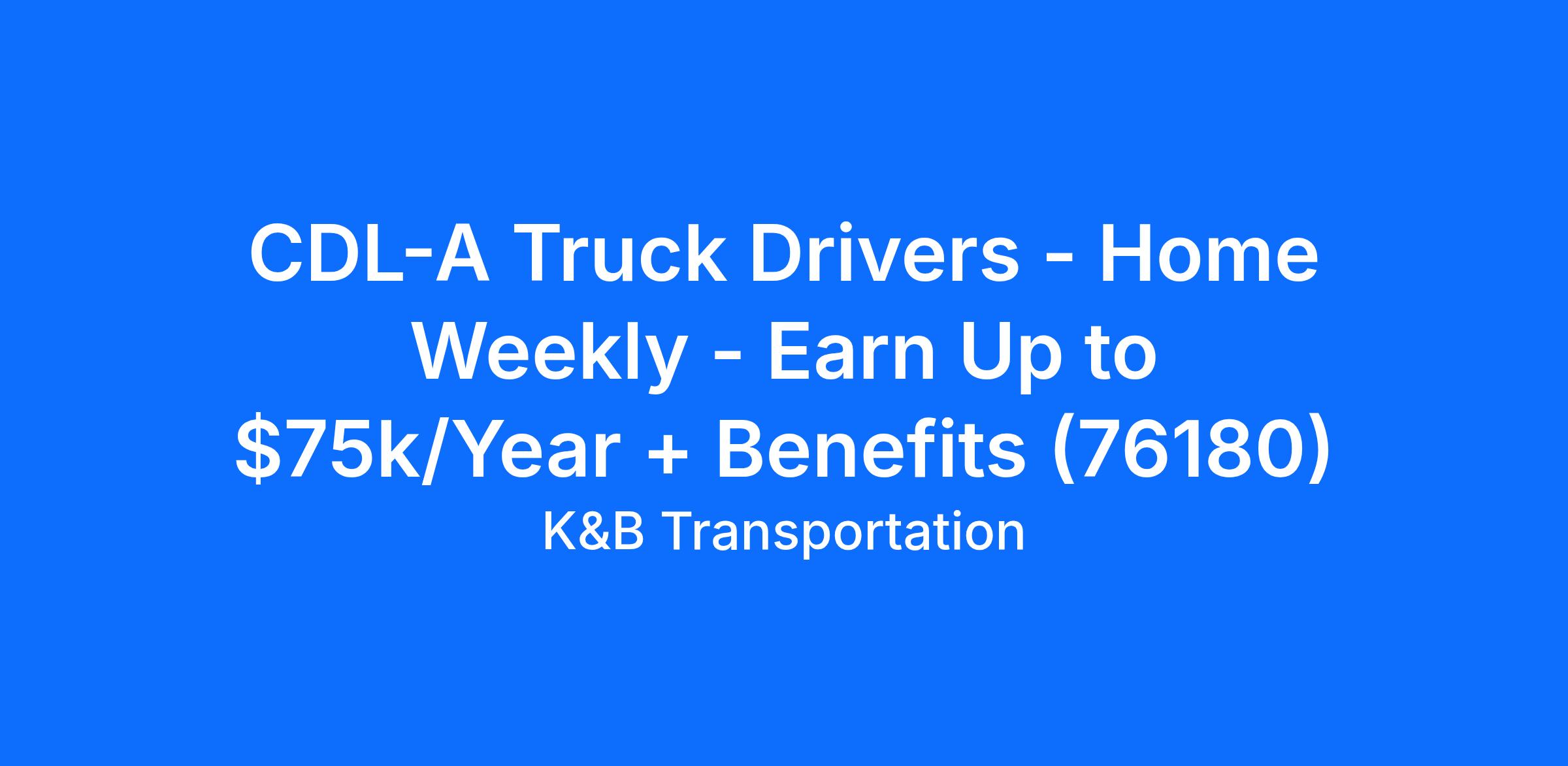 CDL-A Truck Drivers - Home Weekly - Earn Up to $75k/Year + Benefits (76180)