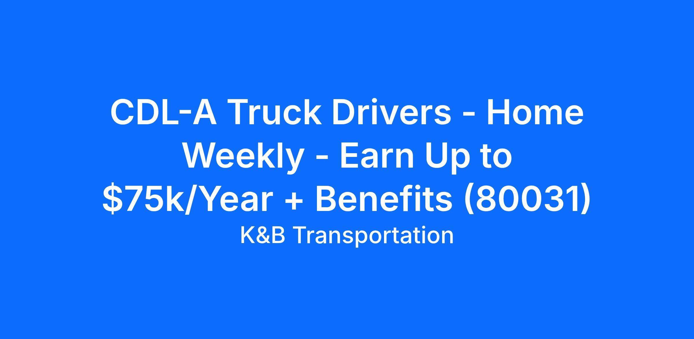 CDL-A Truck Drivers - Home Weekly - Earn Up to $75k/Year + Benefits (80031)