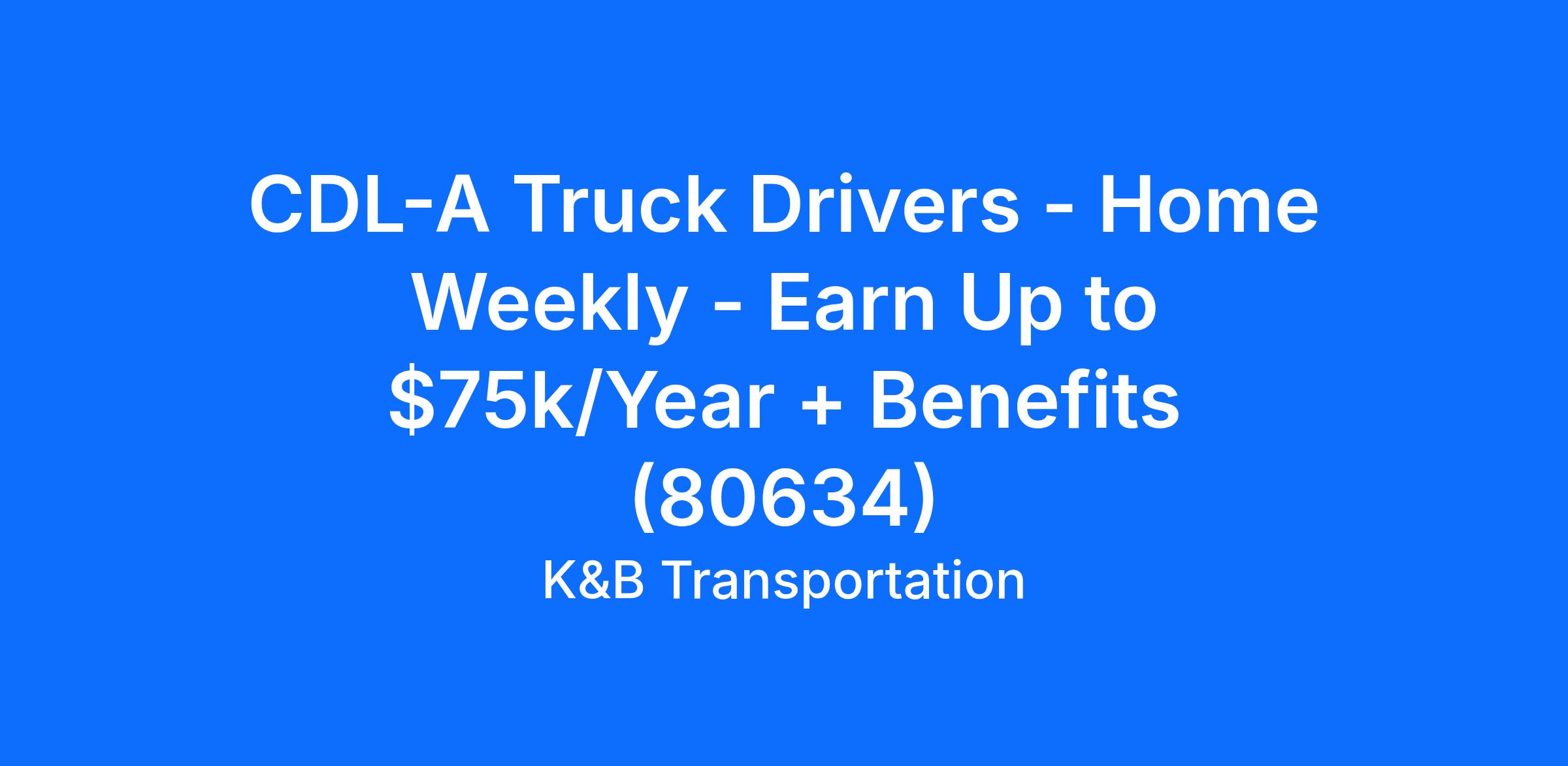 CDL-A Truck Drivers - Home Weekly - Earn Up to $75k/Year + Benefits (80634)