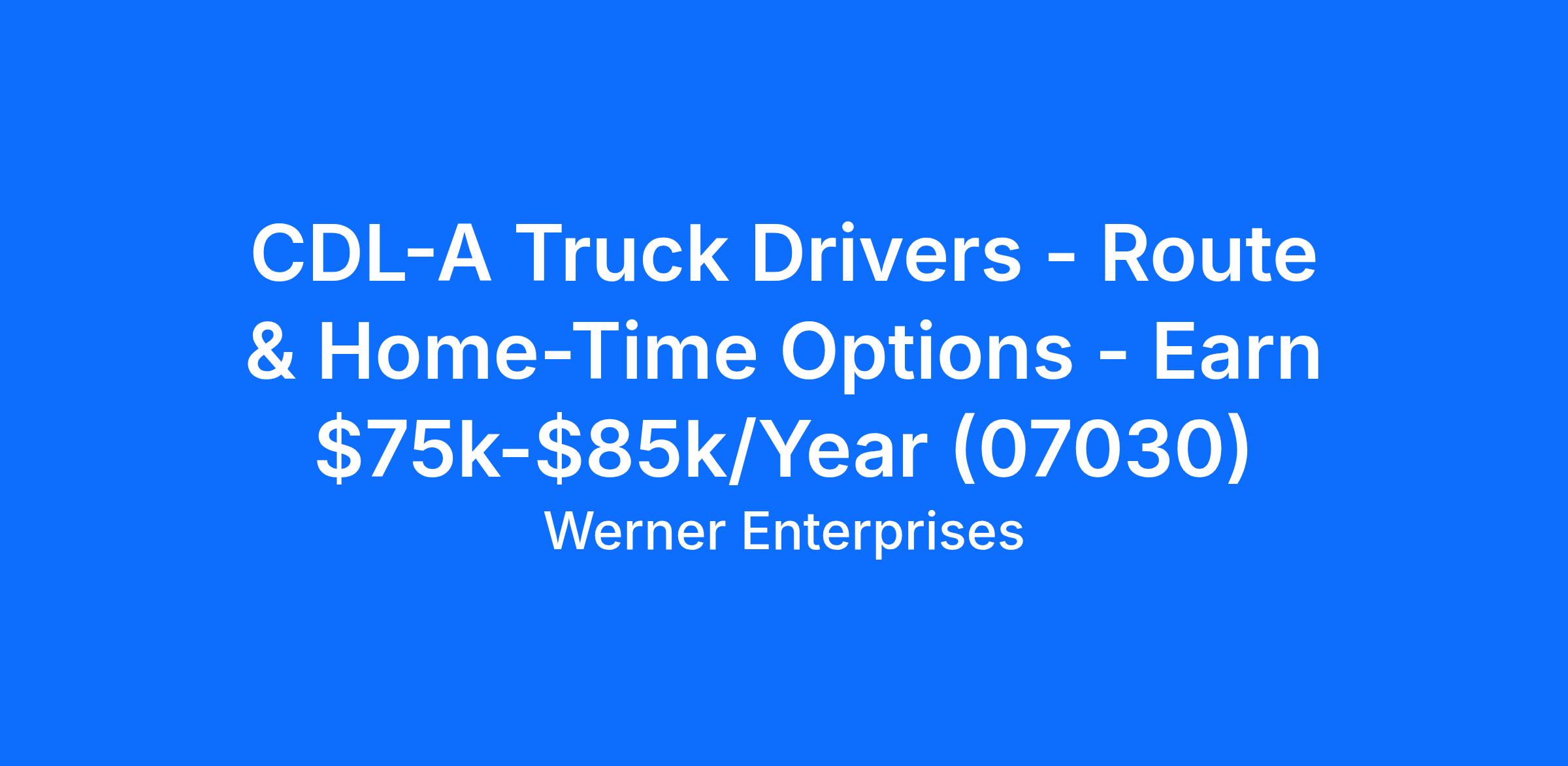 CDL-A Truck Drivers - Route & Home-Time Options - Earn $75k-$85k/Year (07030)
