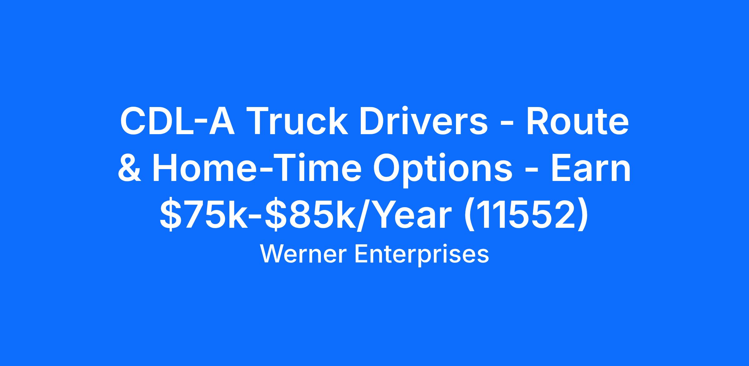 CDL-A Truck Drivers - Route & Home-Time Options - Earn $75k-$85k/Year (11552)
