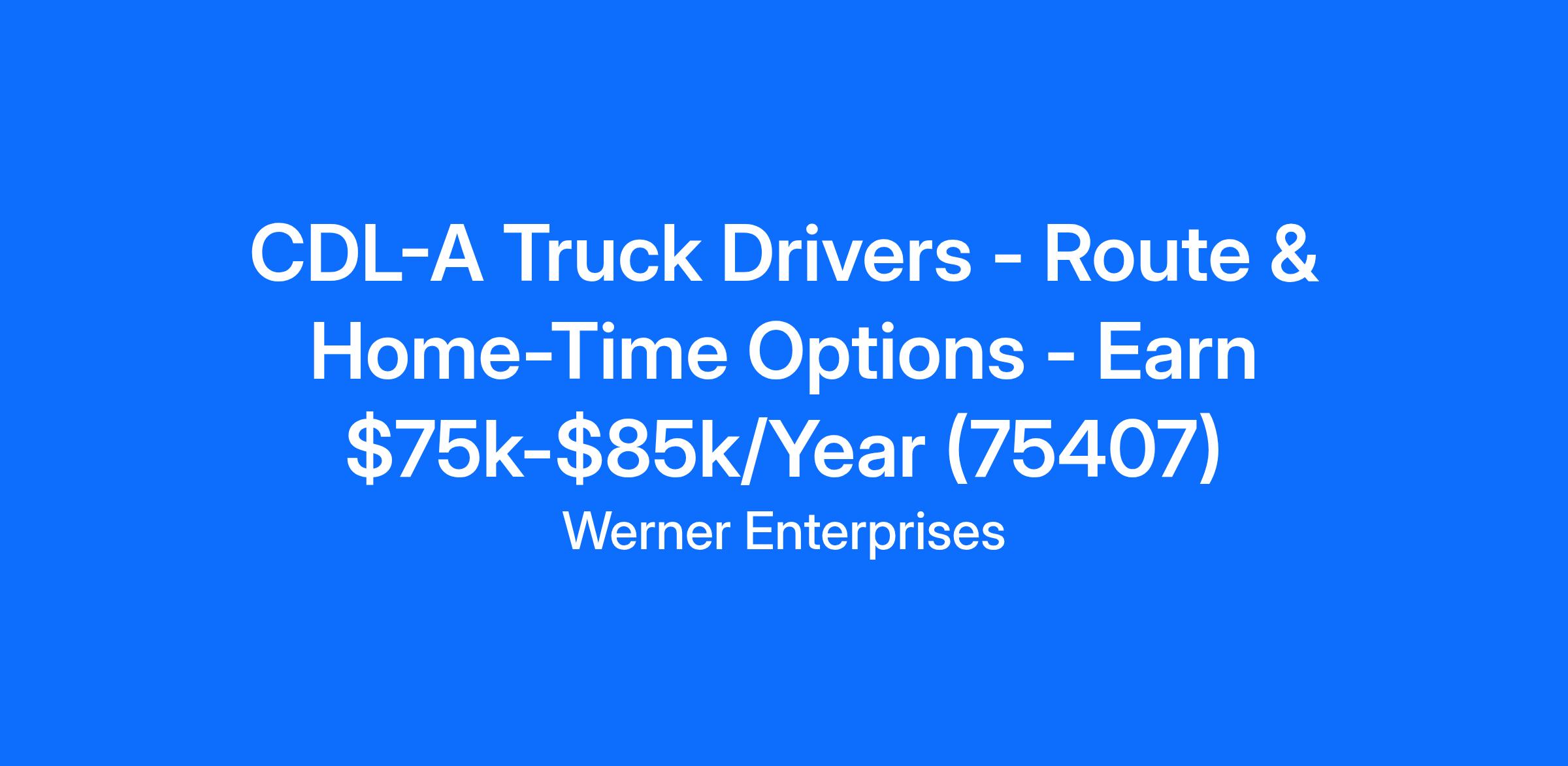 CDL-A Truck Drivers - Route & Home-Time Options - Earn $75k-$85k/Year (75407)