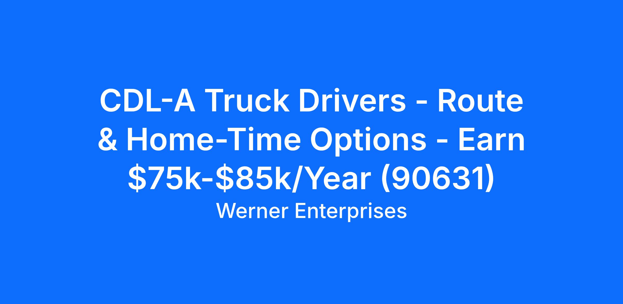 CDL-A Truck Drivers - Route & Home-Time Options - Earn $75k-$85k/Year (90631)