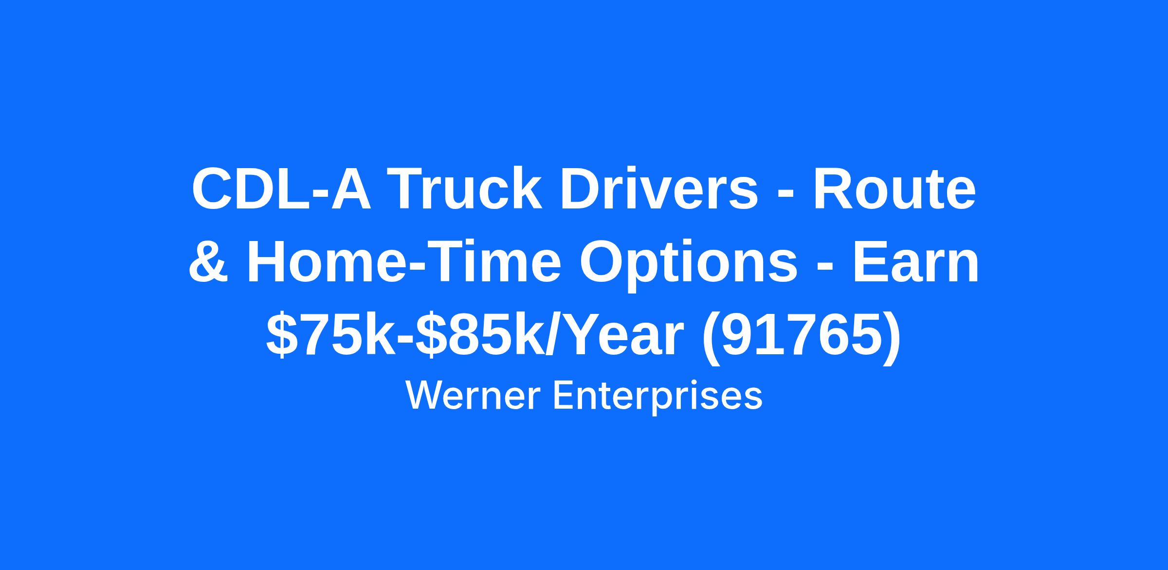 CDL-A Truck Drivers - Route & Home-Time Options - Earn $75k-$85k/Year (91765)
