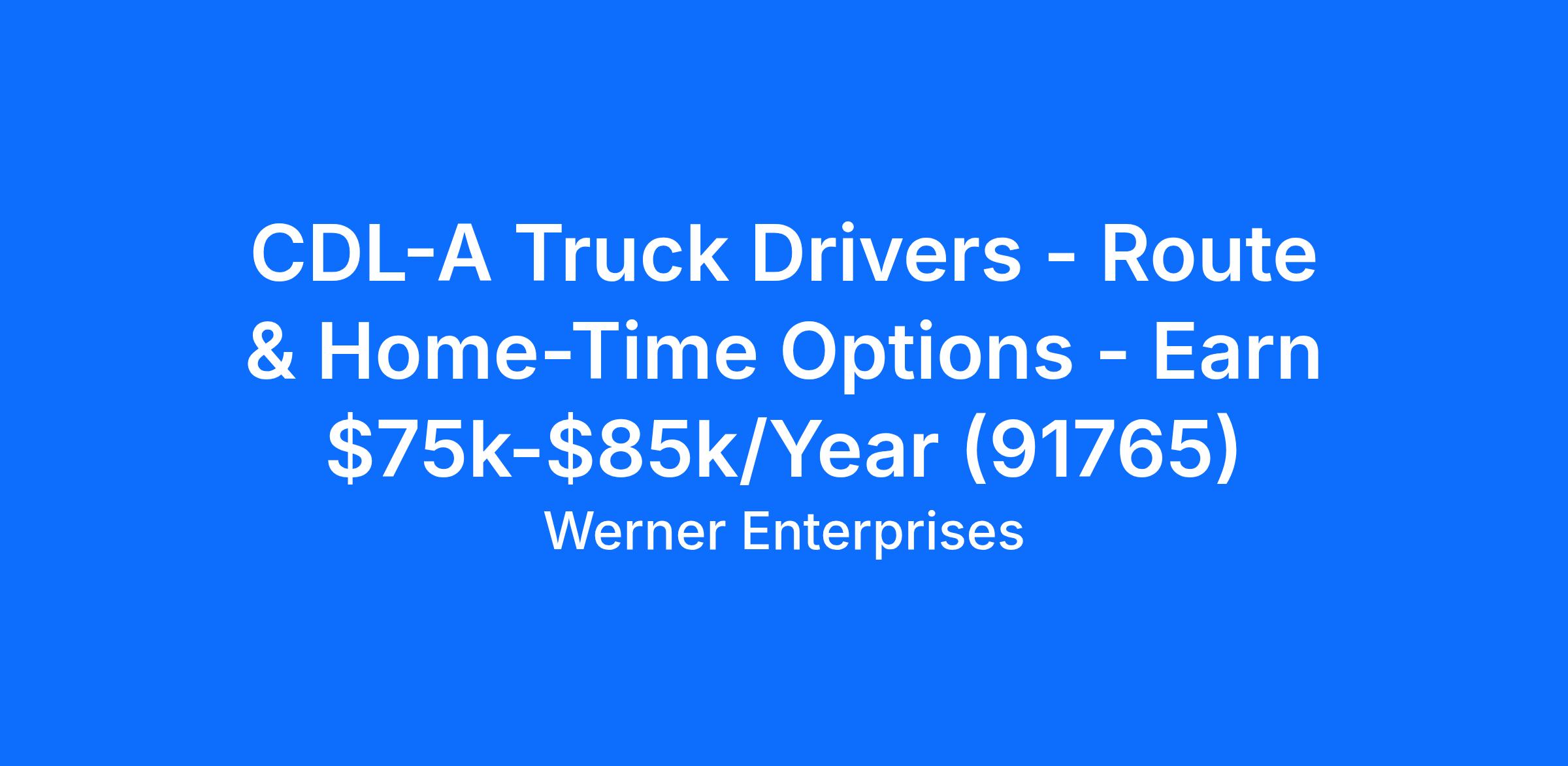 CDL-A Truck Drivers - Route & Home-Time Options - Earn $75k-$85k/Year (91765)