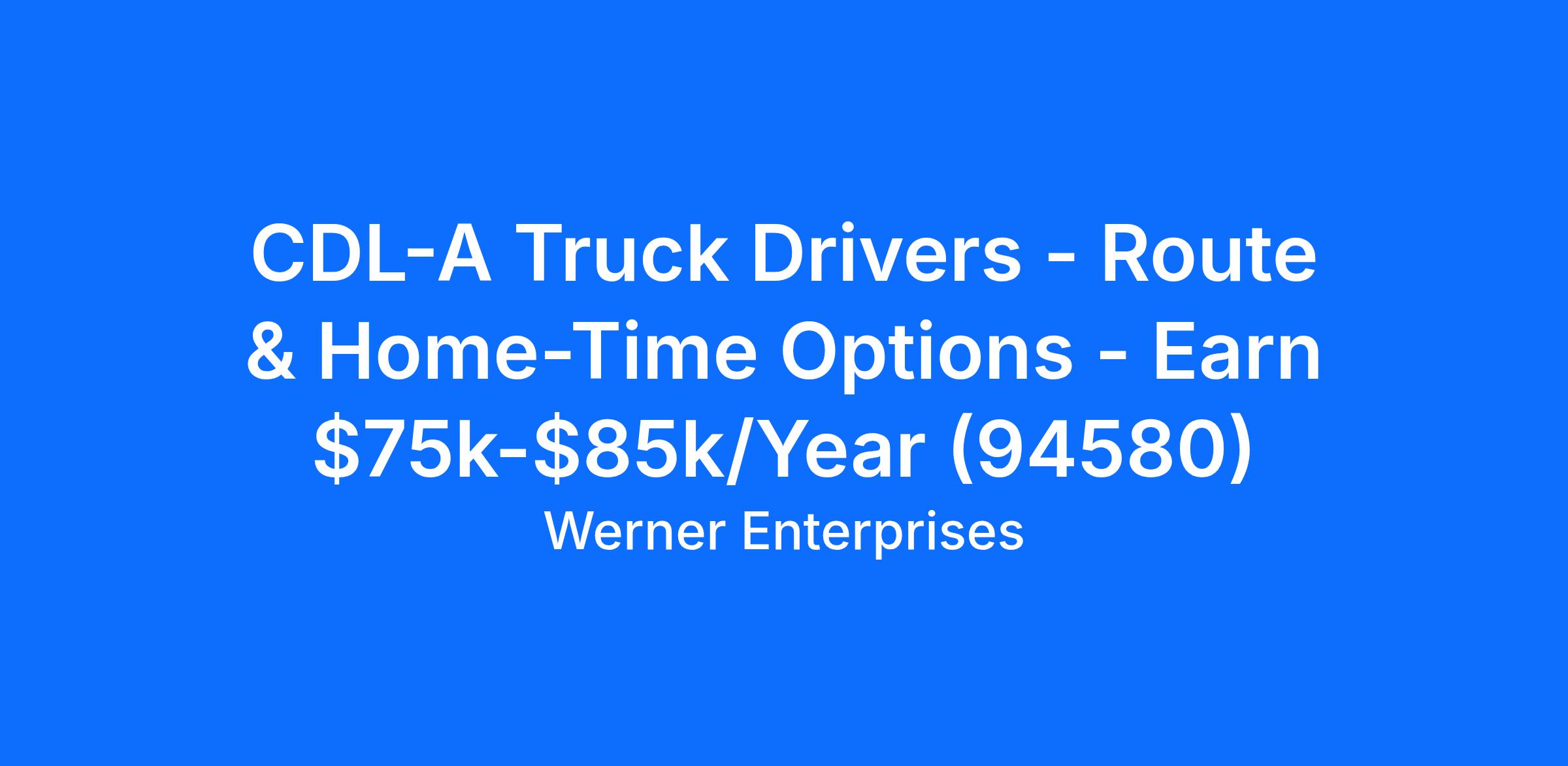 CDL-A Truck Drivers - Route & Home-Time Options - Earn $75k-$85k/Year (94580)