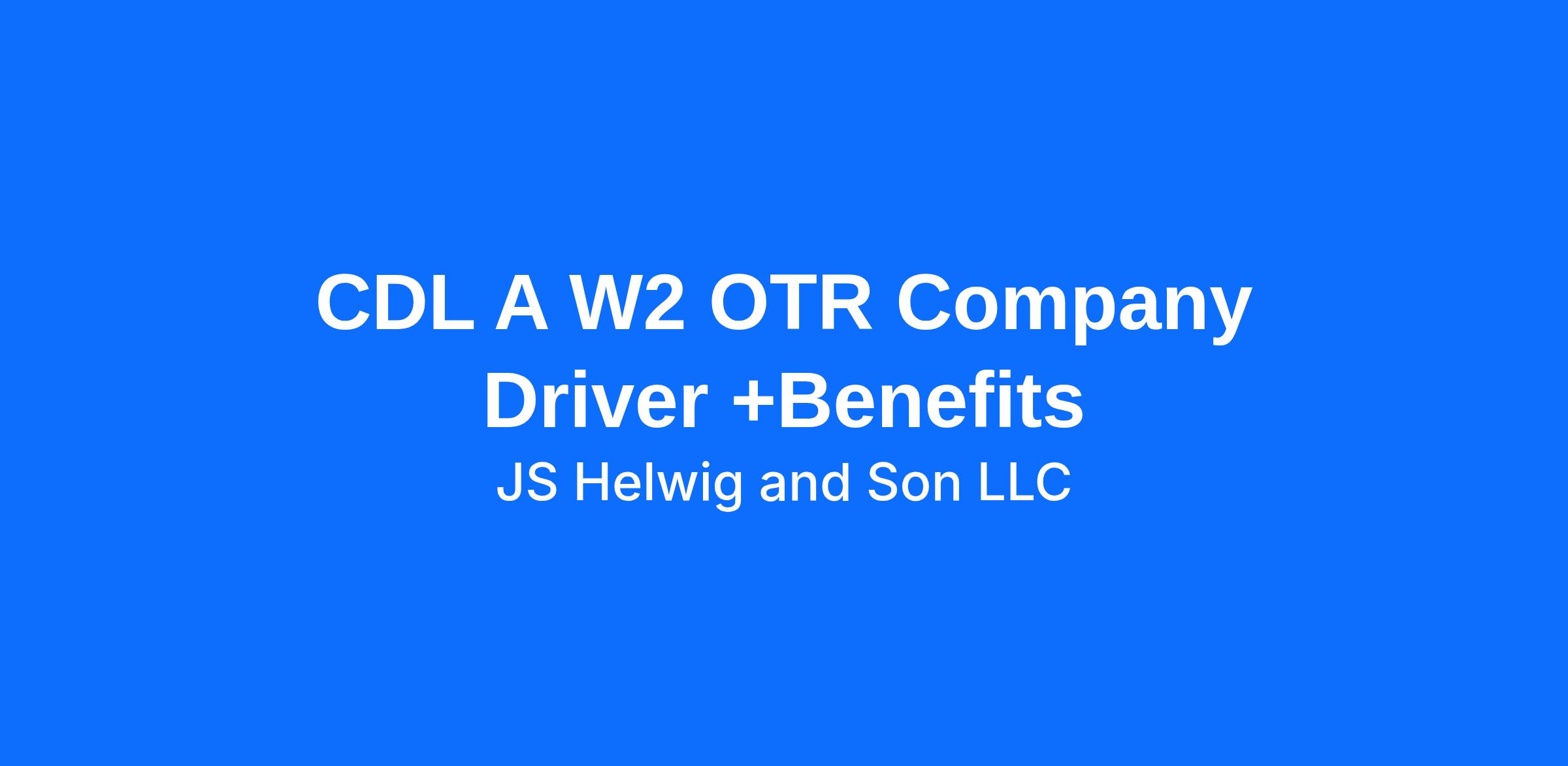 CDL A OTR Company Truck Drivers - Average $1,500 - $2,000 Weekly Gross **Must Have One Year Experience To Apply** BENEFITS FOR COMPANY DRIVERS Start out at .55 cpm with a penny increase at 6 months then .04 cpm increase at 1 year to .60 cpm. Annual increases up to .65 cpm 99% Customer Freight! Medical & Dental insurance after 90 days Out 3 Weeks, Will Buy Back Unused Time off @ $100 Per Day $10,000.00 Referral bonus ($2,000 paid when driver takes dispatch, $1,000 paid every month for 8 months) 2 Referrals in 2026 is Worth $25k 2022 and Newer Freightliner Cascadias Automatics, Governed at 65MPH APUs Inverters 1800W Refrigerators Installed Double Bunk Air-Ride Seats Bluetooth Functionality Virgin Tires, No recaps FREE Passenger Program from day one! Free Laundry Facilities Driver Gym and Lounge Pet Program ( We are a pet friendly fleet ) No breed restrictions Safety Award Program All trucking companies offer a truck, miles and lots of promises. At J.S. Helwig & Son, we offer a driving career that is truly DIFFERENT FROM THE START! At Helwig our commitment to our drivers is second to none. We build, grow and maintain our relationships with our drivers with a real open door policy, open communications and transparency. Our entire operational model has been designed and constructed with integrity and respect for the driver as the cornerstone. We are only as successful as you are! Pick up the phone and get on the road to success with Helwig today! Wage Range: 1500.00 - 2000.00 per mile General Description of Benefits: Medical & Dental insurance after 90 days of employment One Year Verifiable CDL A Experience Required in The Last 36 Months Clan MVR No More Than 3 Minor Preventables in The Last 3 Years No More Than 1 Major Preventable in The Last 3 Years No DUI DVI DWI in The last 10 Years Must Meet FMCSA Requirements Must Not Be Prohibited In The FMCSA Clearinghouse